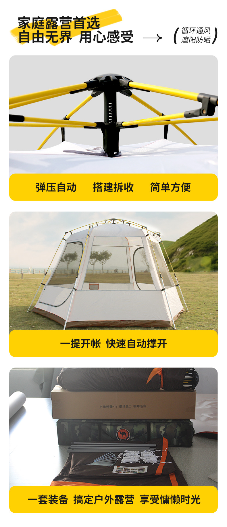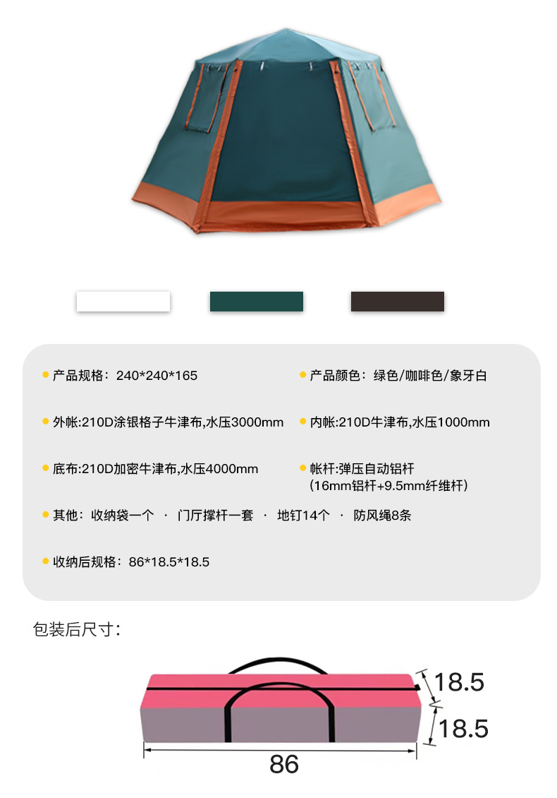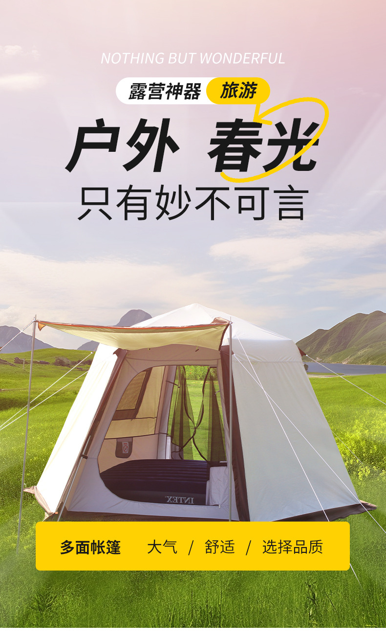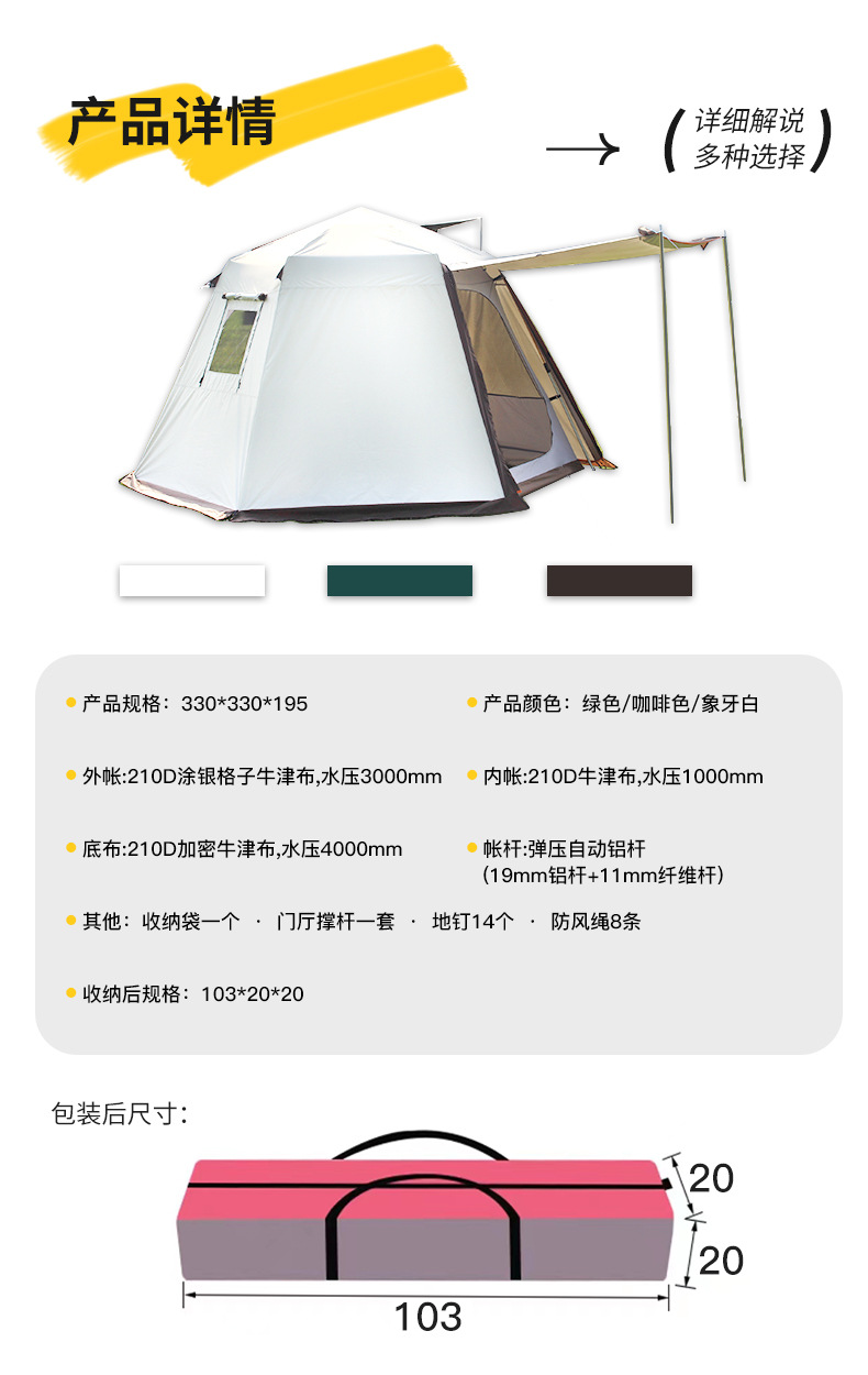 야외 캠핑 텐트 자동 유압 3-4 명 자외선 차단제 및 방비 이중층 모든 포함 육각형 텐트 공장 직접 판매스토어 가기