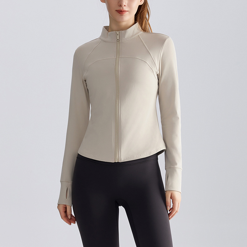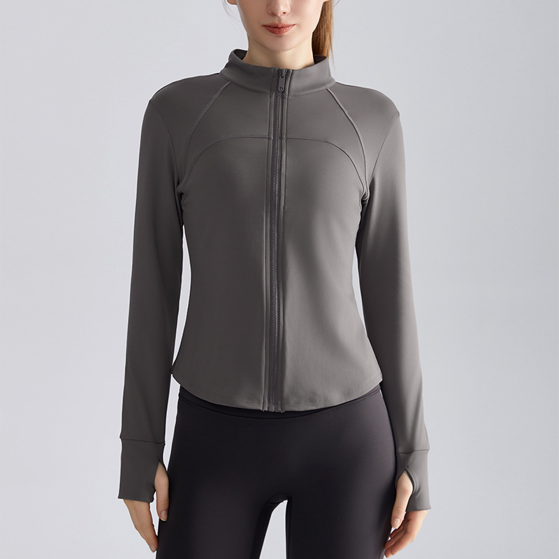 Chuanton 요가 코트 여성 가을 및 겨울 스포츠 피트니스 슬림핏 슬리밍 긴 소매 지퍼 외부 착용 스포츠 코트 여성의 가을