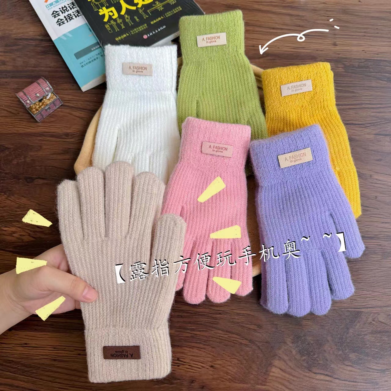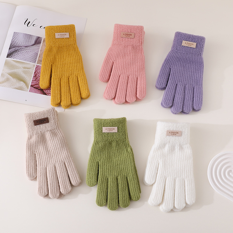 여성용 한국식 캔디 컬러 니트 장갑 겨울 따뜻한 기모 두꺼운 엑스트라 핑거 사이클링 터치 스크린 장갑스토어 가기