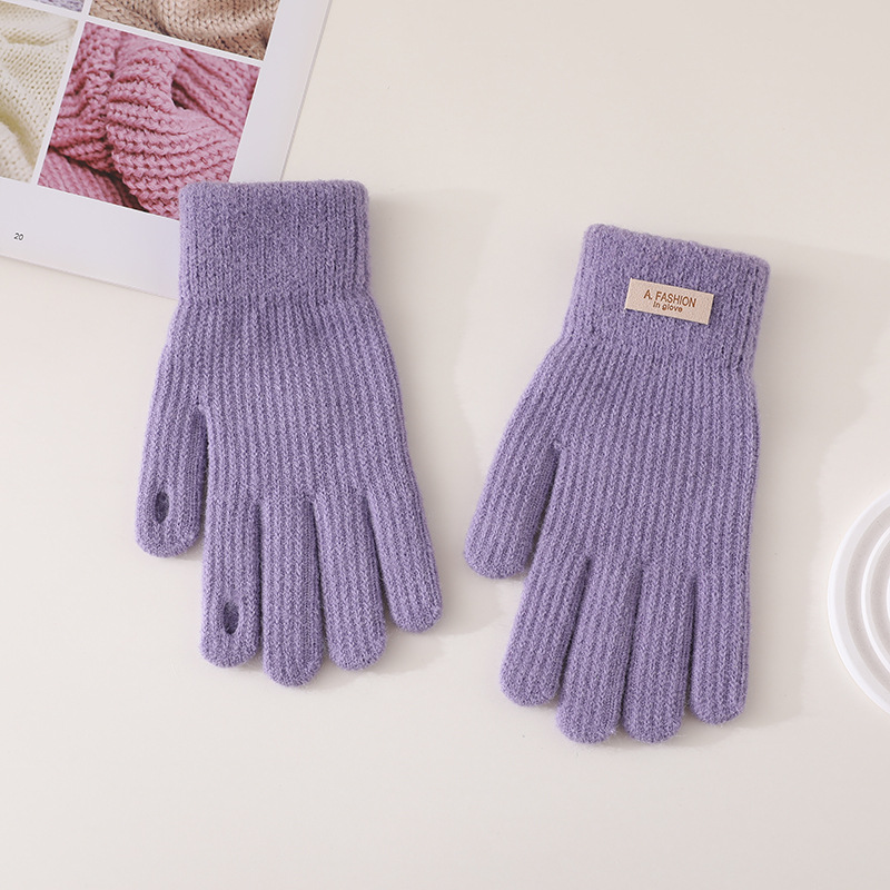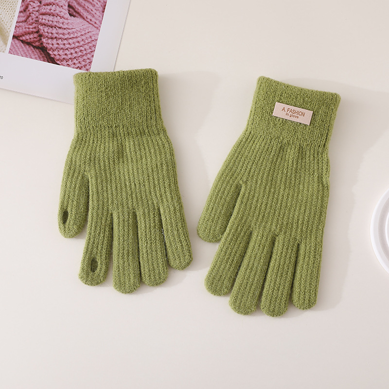 여성용 한국식 캔디 컬러 니트 장갑 겨울 따뜻한 기모 두꺼운 엑스트라 핑거 사이클링 터치 스크린 장갑