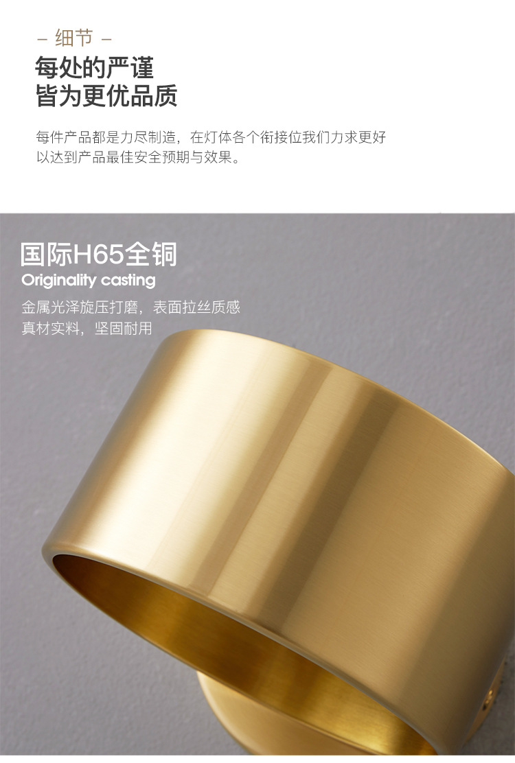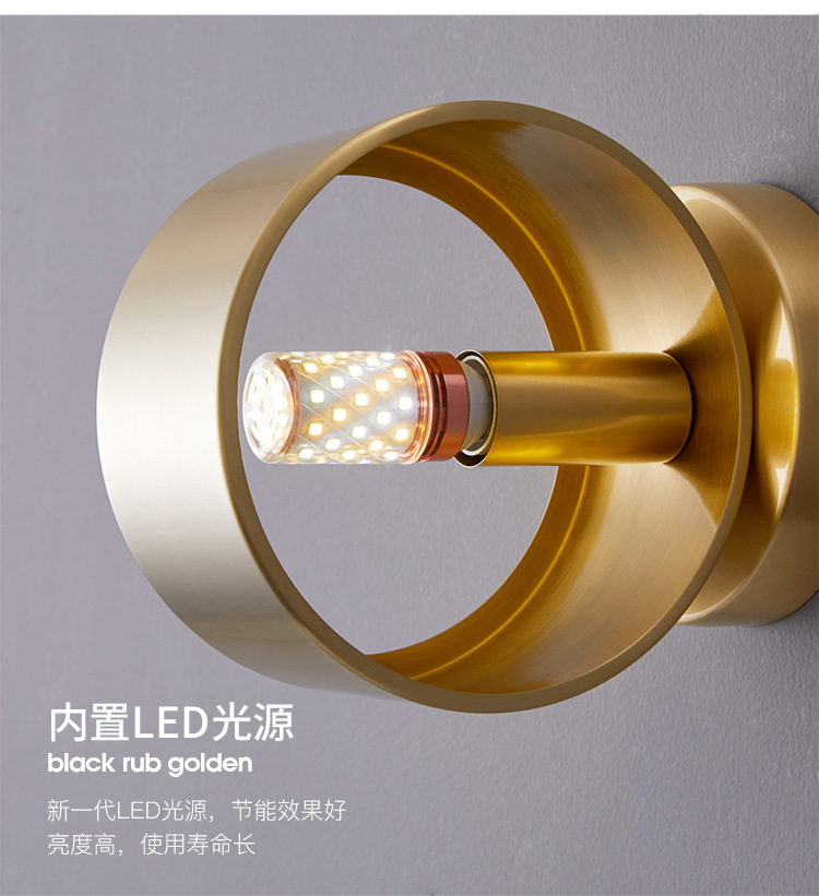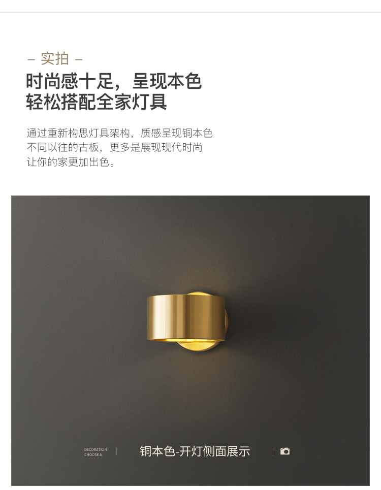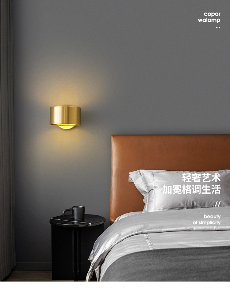 현대 간단한 미니멀리스트 모든 구리 거실 TV 배경 벽 램프를 읽고 가벼운 고급 침실 회전 가능한 침실 벽 램프