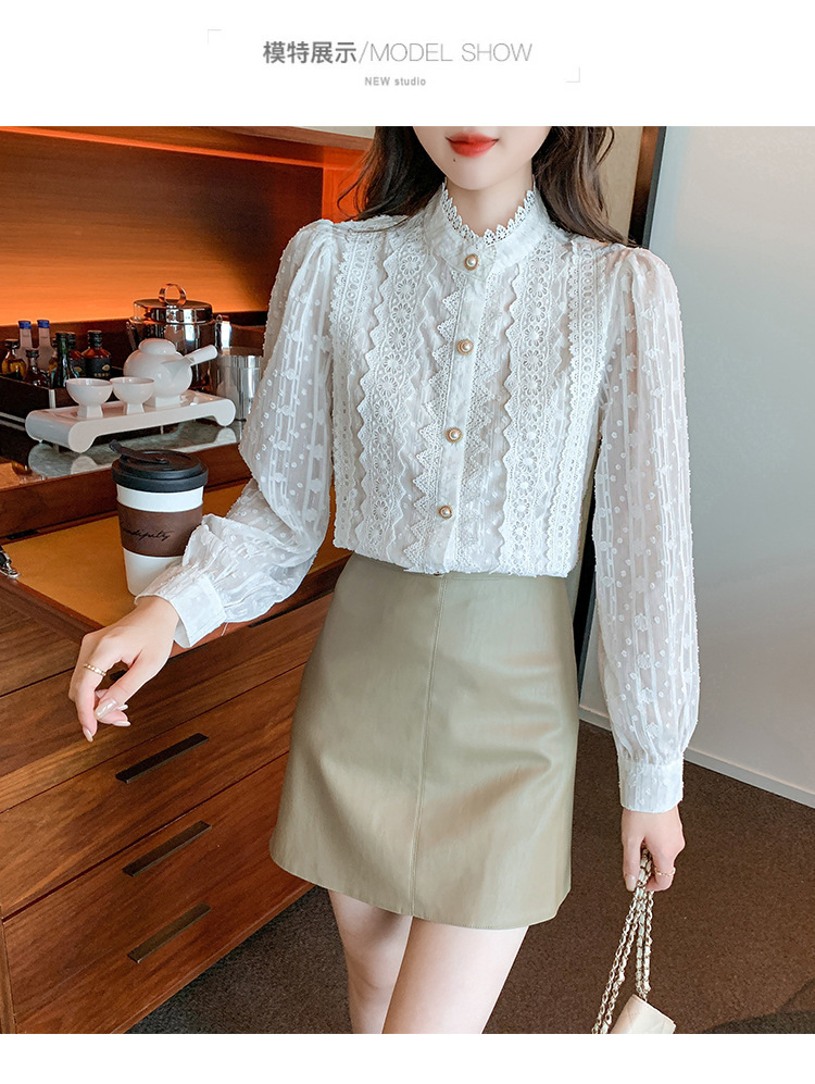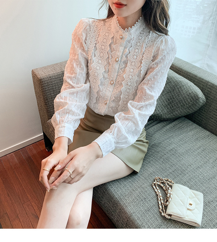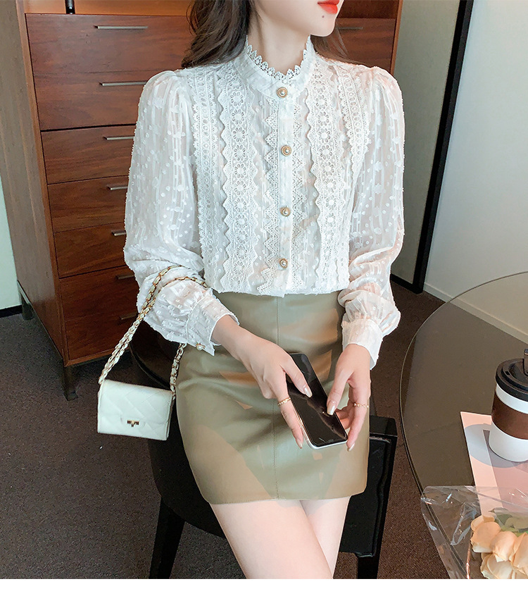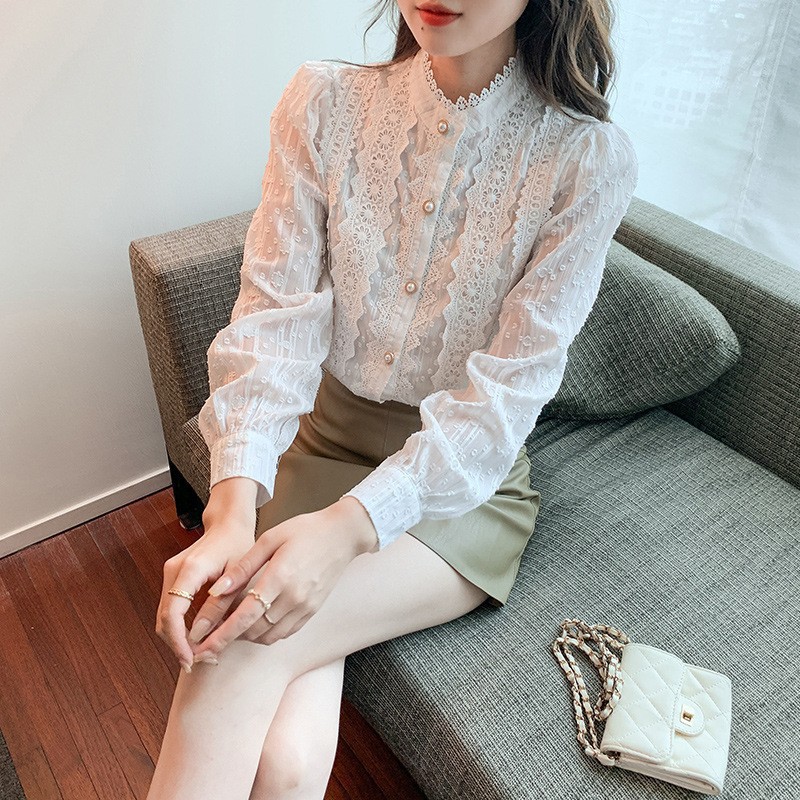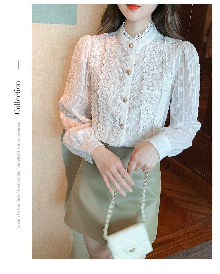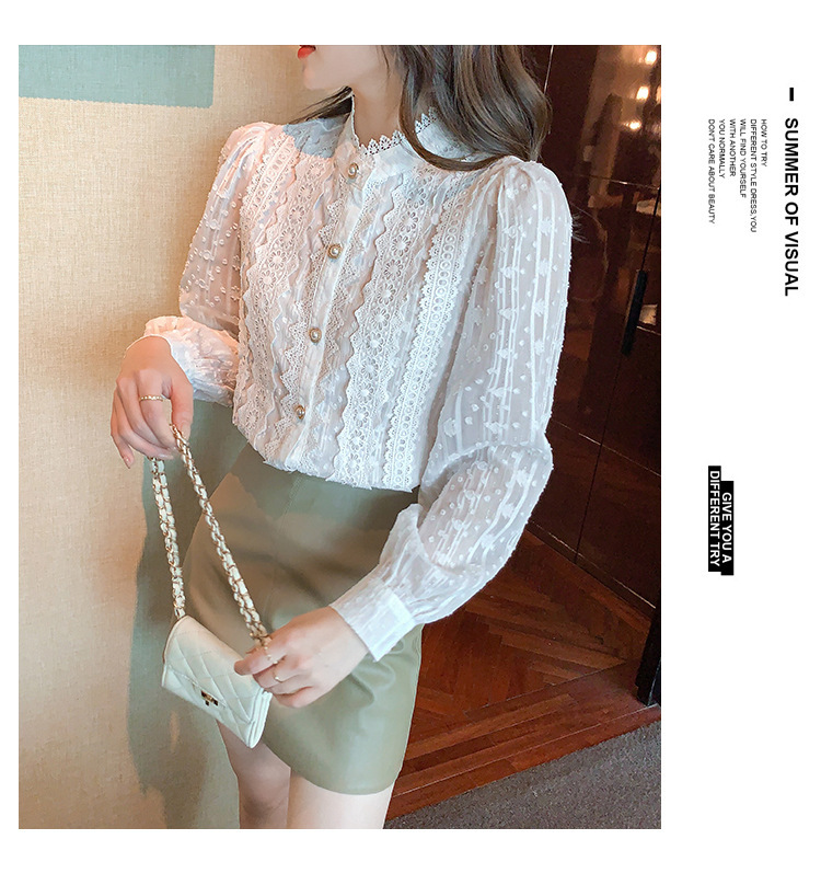 진짜 샷 대외 무역 2024 봄과 가을 새로운 패션 디자인 느낌 긴 소매 서양식 달콤한 쉬폰 여성 셔츠스토어 가기