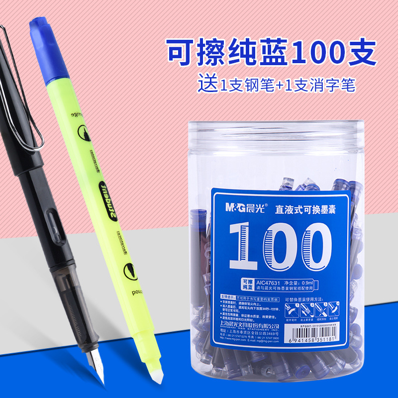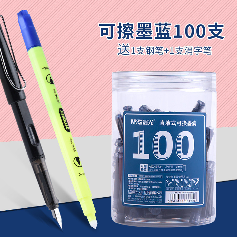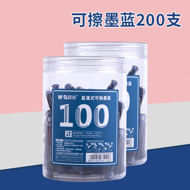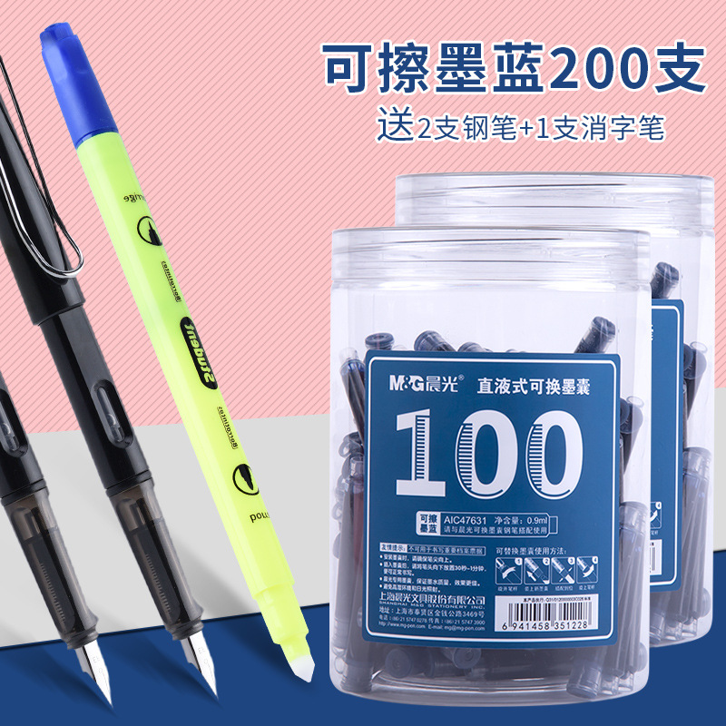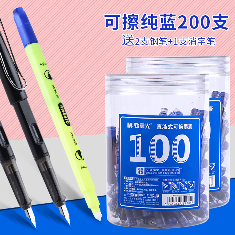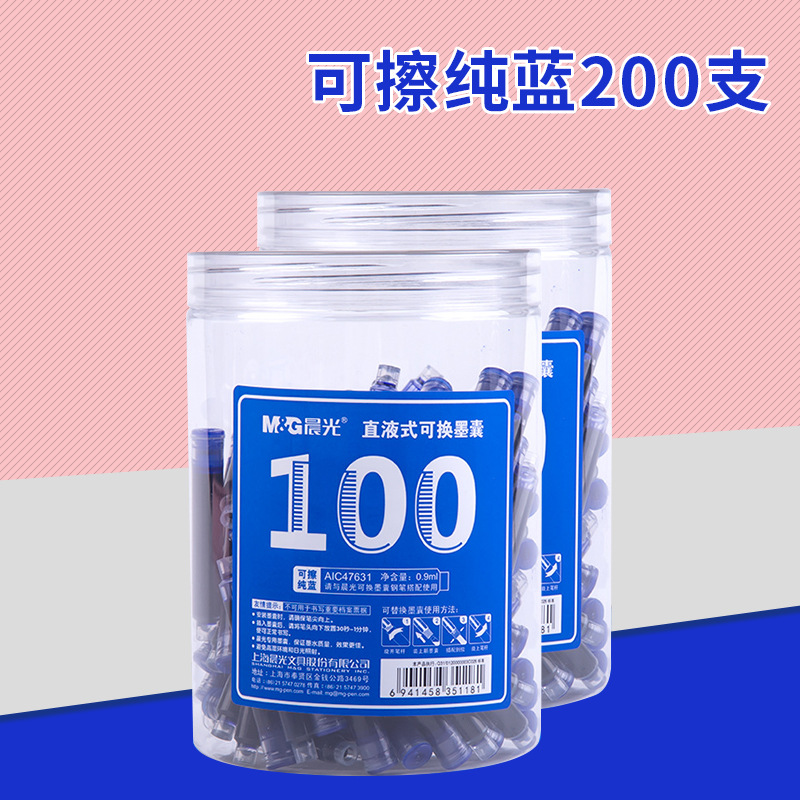 Chenguang 펜 잉크 sac 200 저렴한 잉크 sac 교체 가능한 잉크 방광 지울 수있는 순수 블루 블루 블랙 초등학생스토어 가기