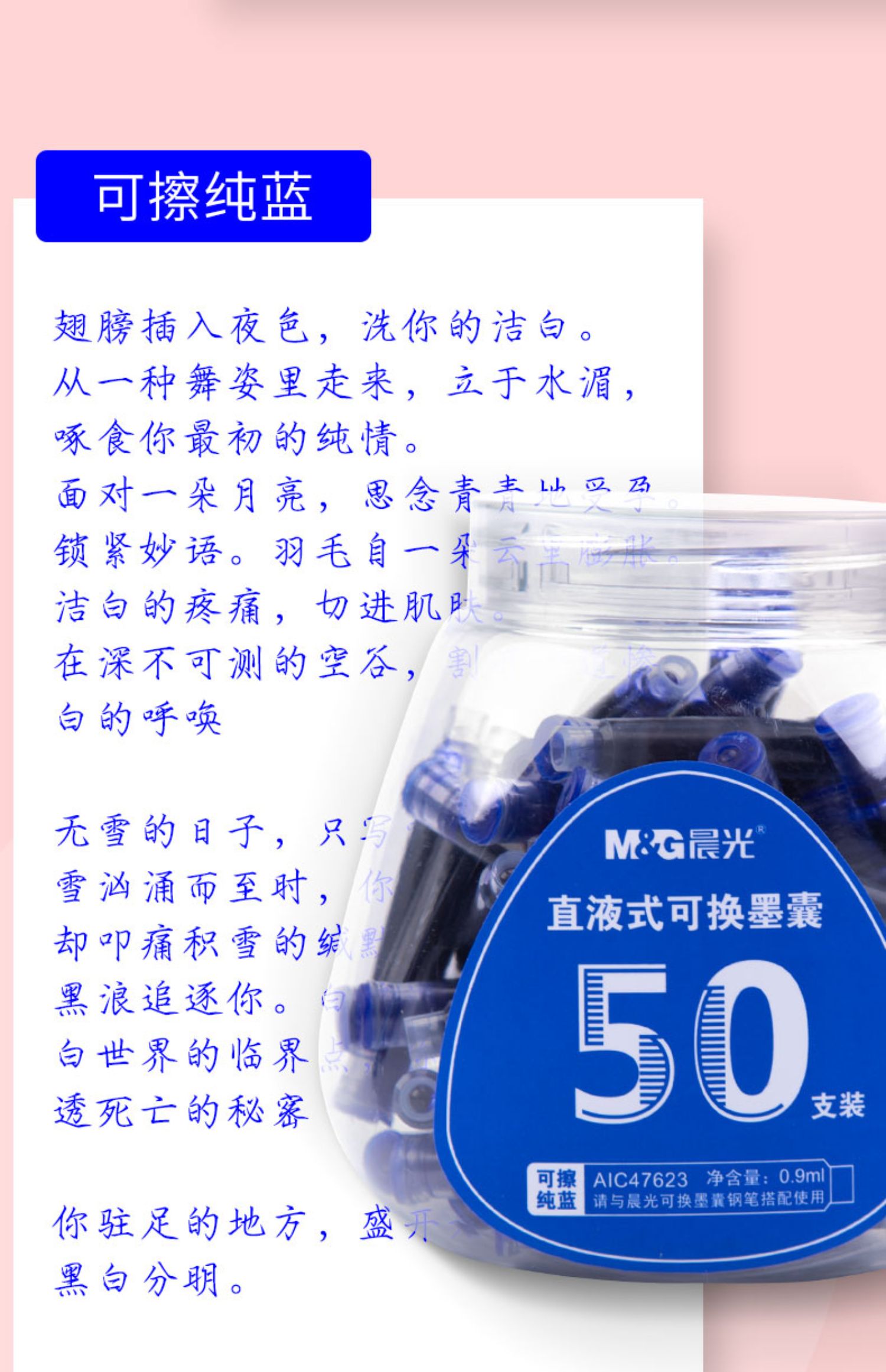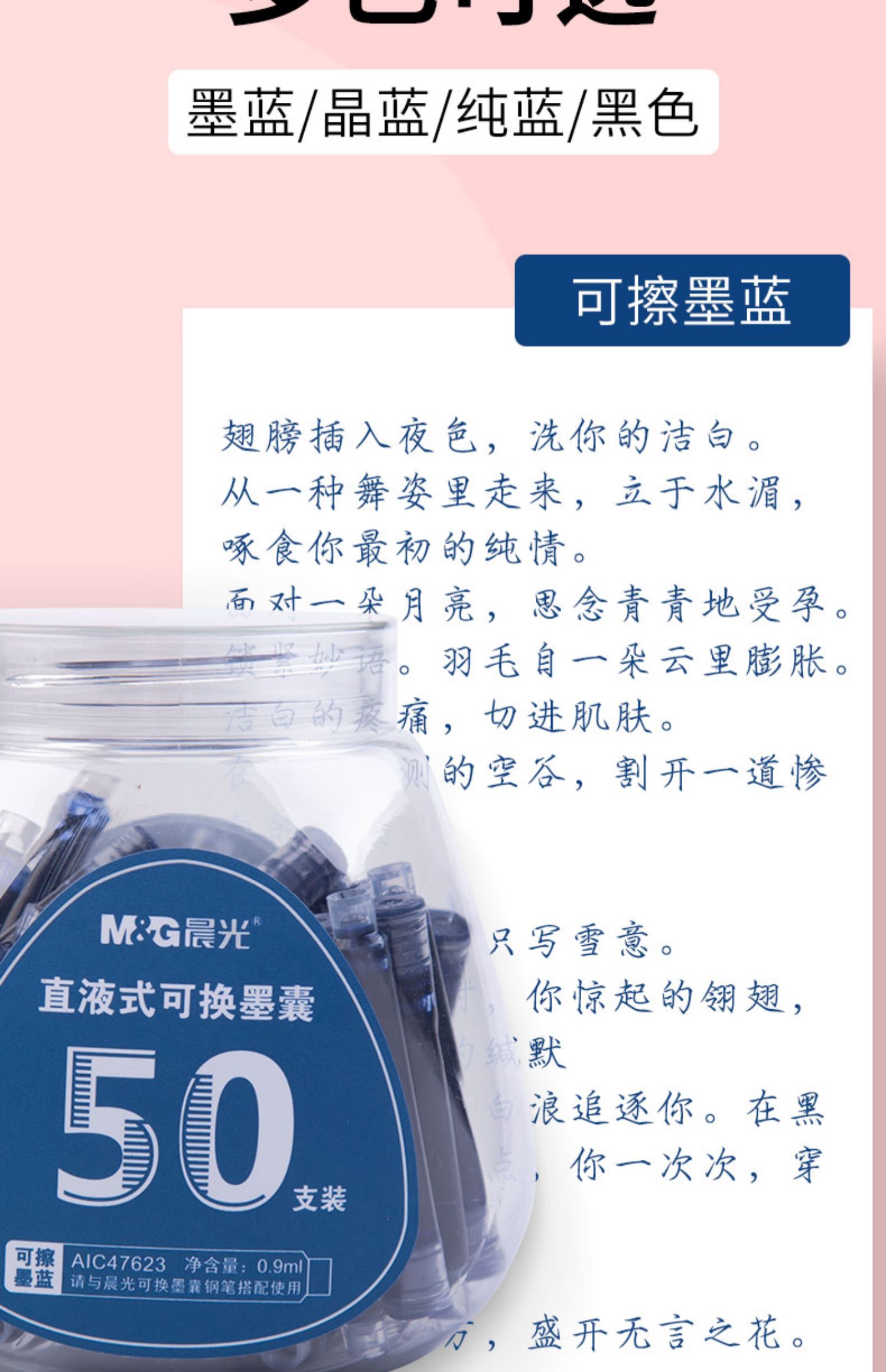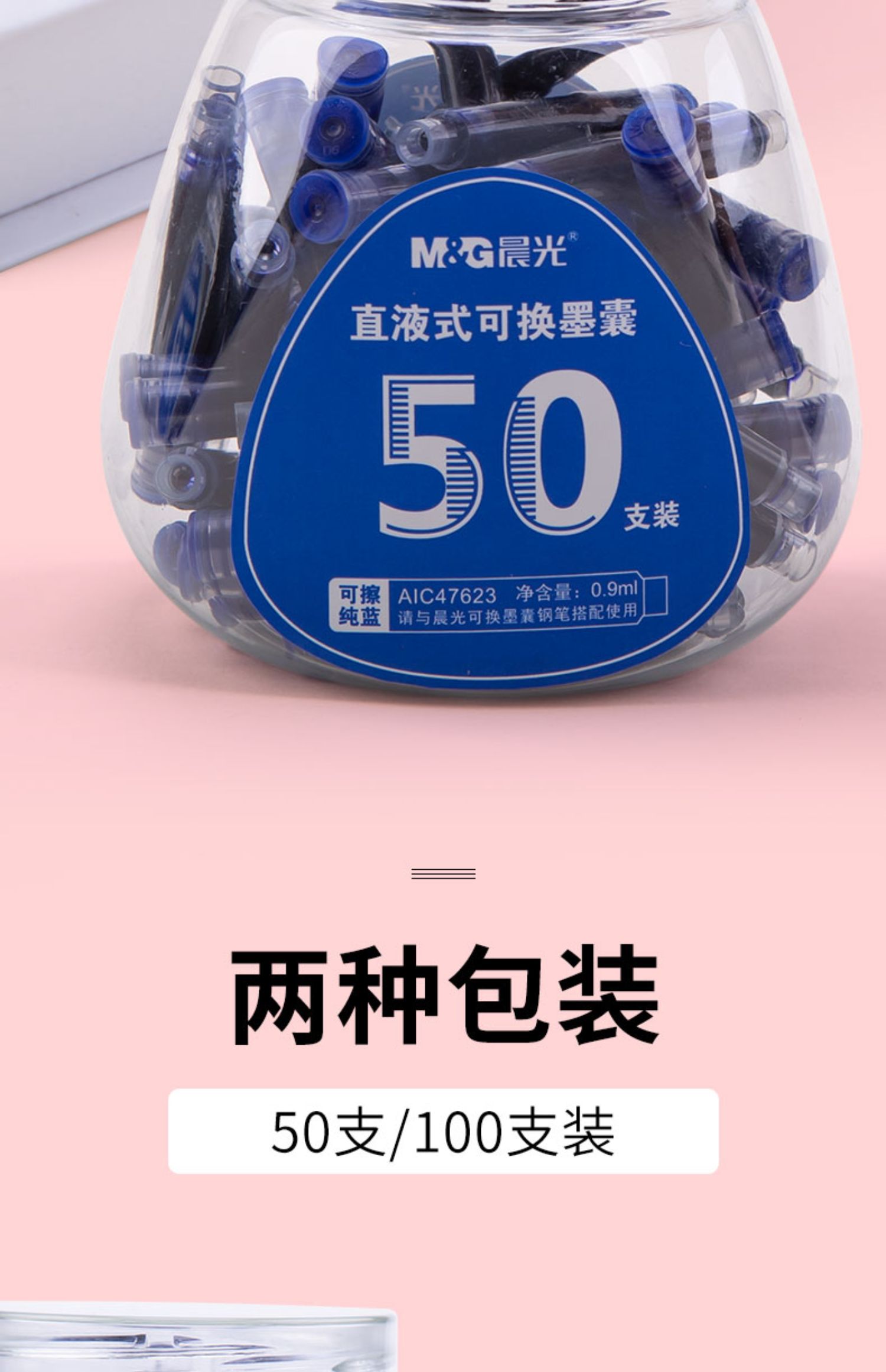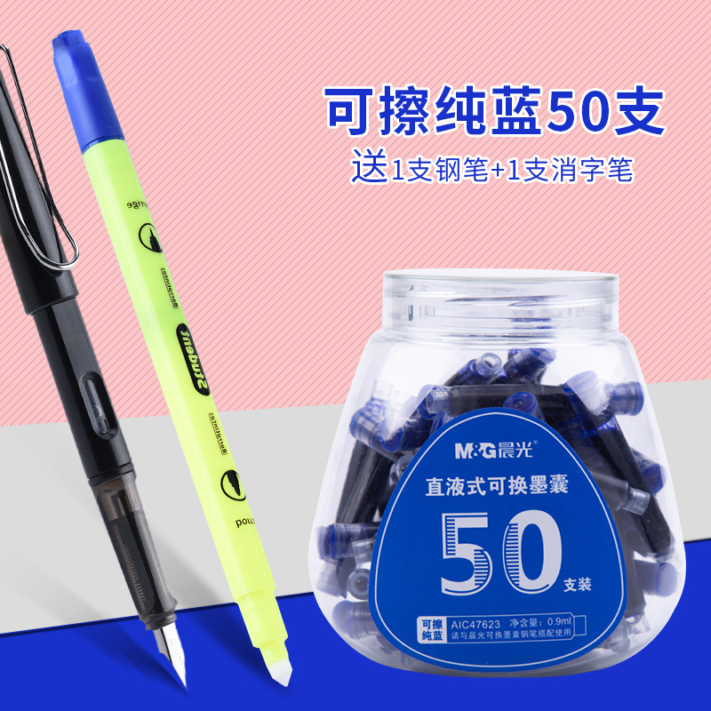 Chenguang 펜 잉크 sac 200 저렴한 잉크 sac 교체 가능한 잉크 방광 지울 수있는 순수 블루 블루 블랙 초등학생스토어 가기