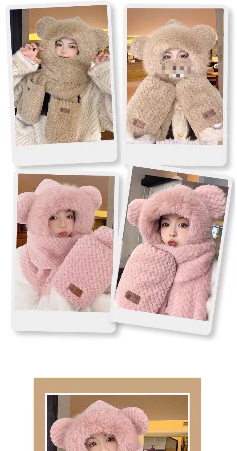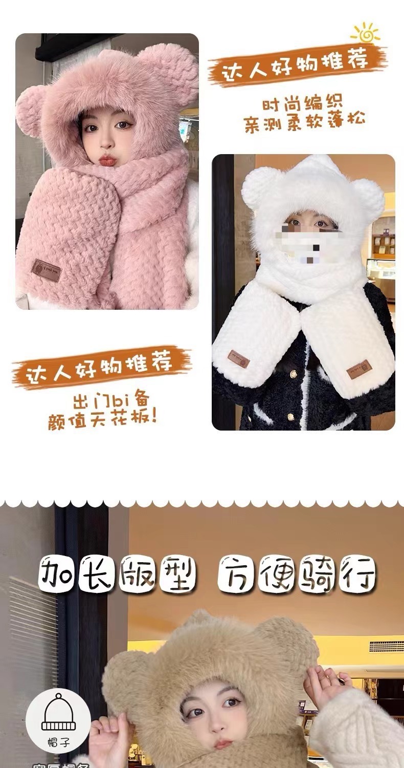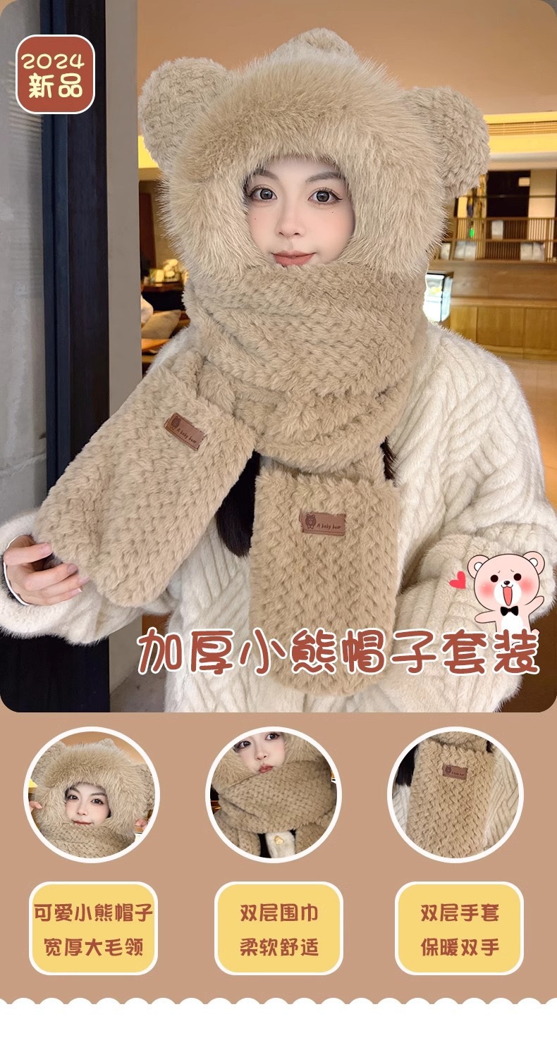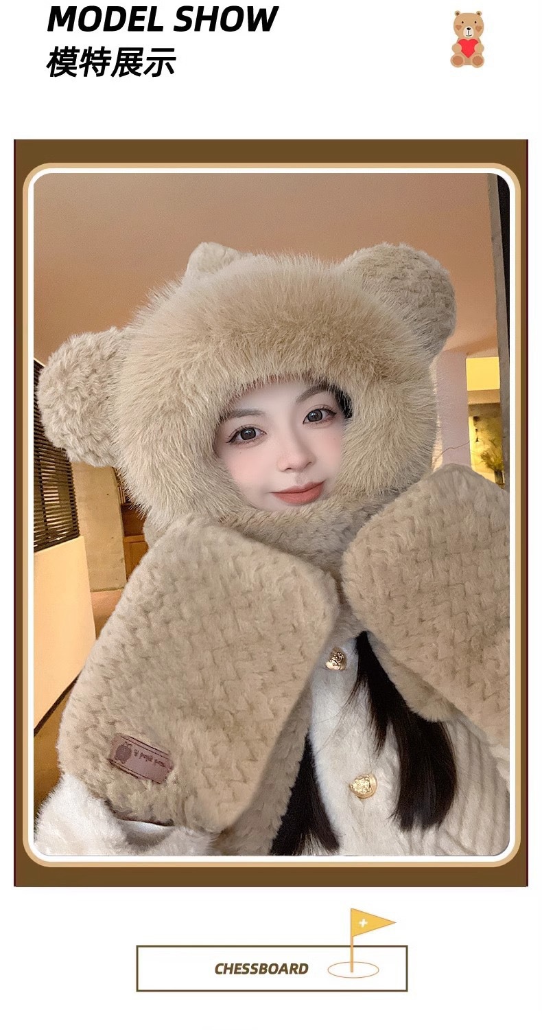 귀여운 봉제 모자 스카프 장갑 모든 경기 여성의 가을과 겨울 두꺼운 따뜻한 사이클링 방한 귀 보호 후드스토어 가기