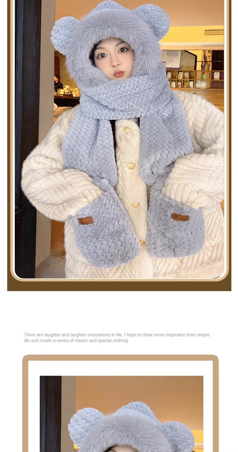 귀여운 봉제 모자 스카프 장갑 모든 경기 여성의 가을과 겨울 두꺼운 따뜻한 사이클링 방한 귀 보호 후드