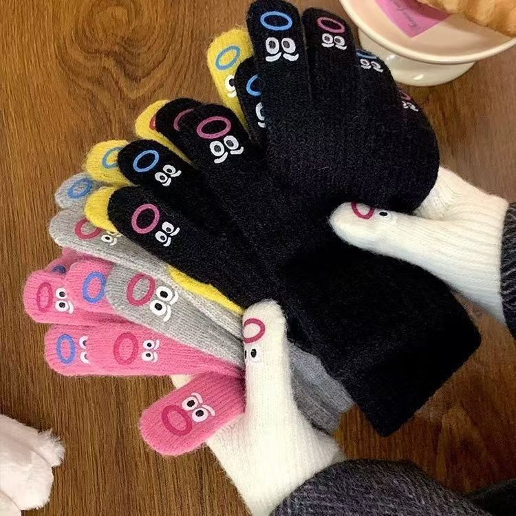 공장 도매 24 년 소녀 심장 귀여운 재미있는 표현 다섯 손가락 장갑 터치 스크린 일본 학생 겨울 승마