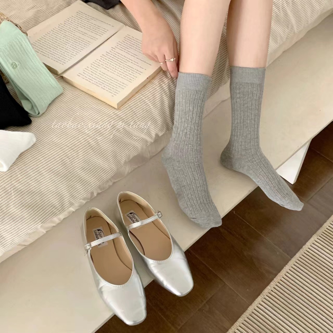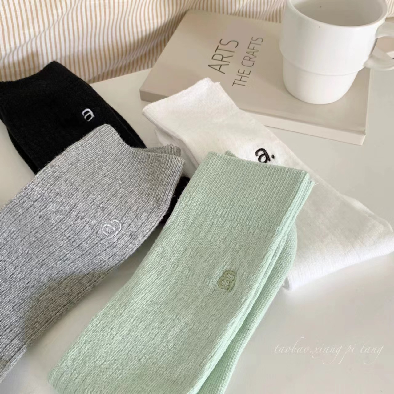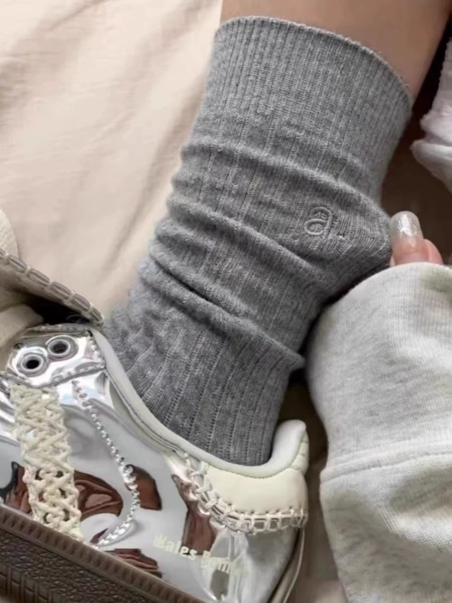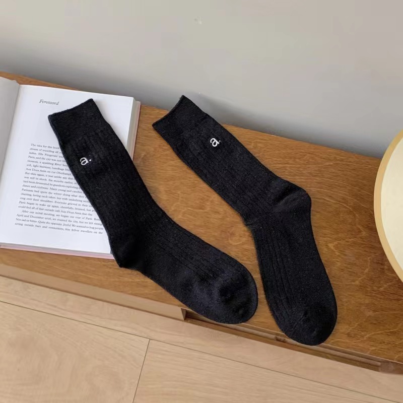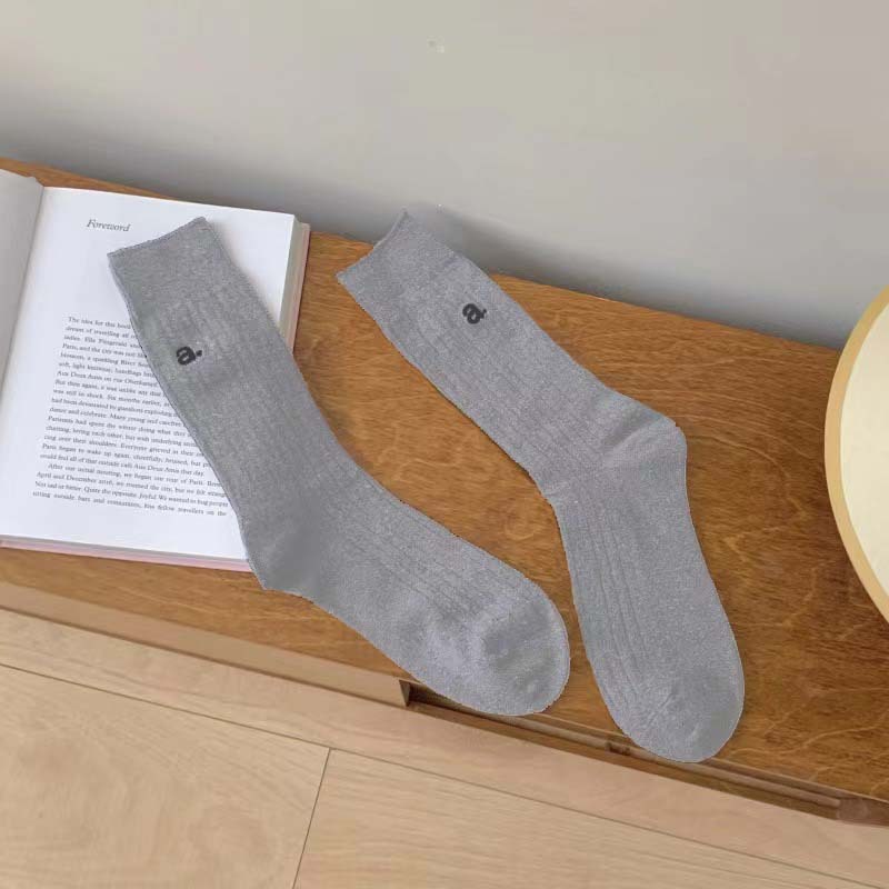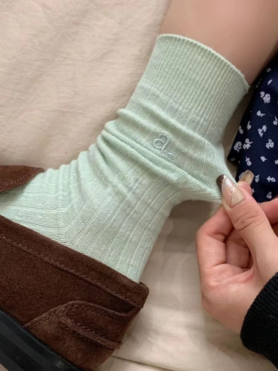 가을과 겨울 편지 자수 컬러 도파민 새로운 스타일 양말 튜브 솔리드 컬러 다리 더미 타이드 양말에 남성과 여성을위한 편지스토어 가기