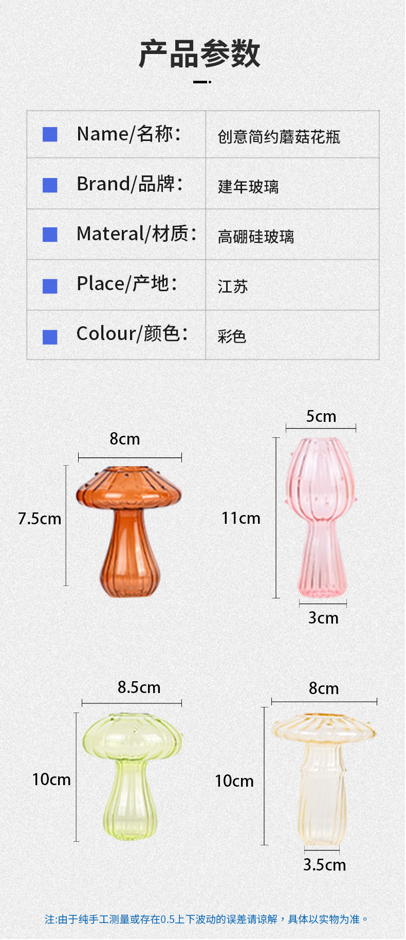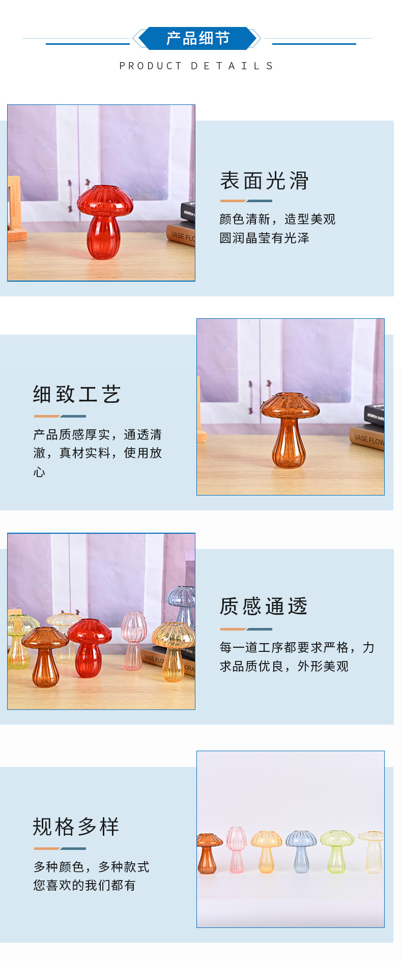 제조업체 도매 컬러 유리 버섯 꽃병 아로마테라피 병 빨간 유리 수경 꽃병 창의적인 홈 장식품스토어 가기