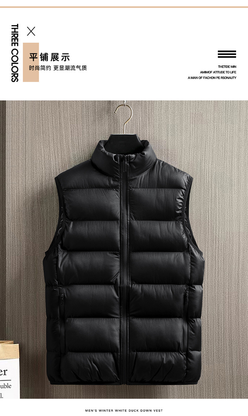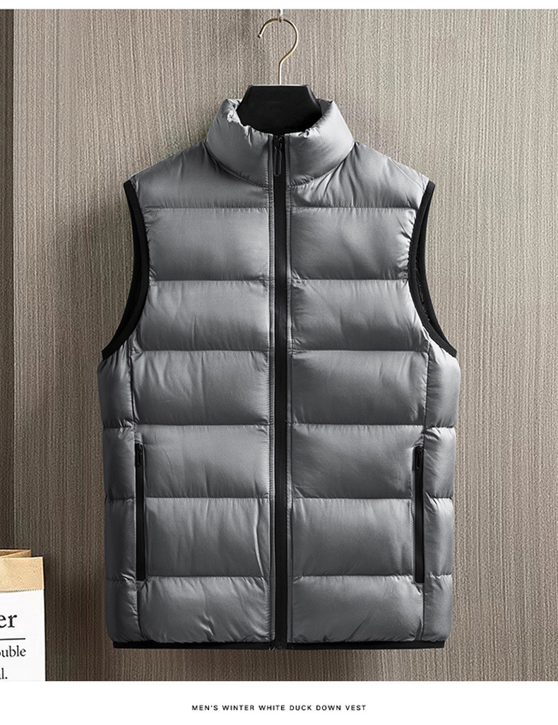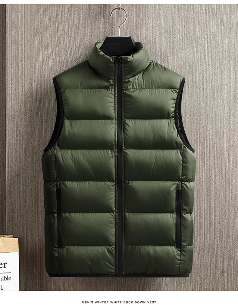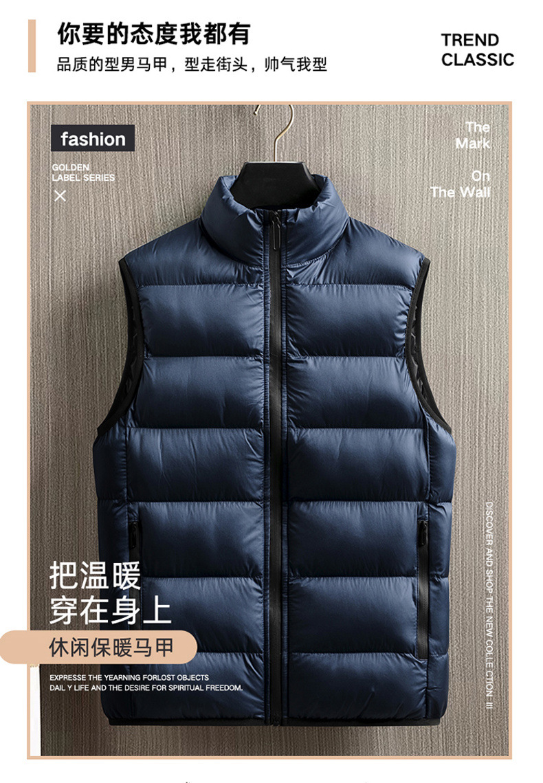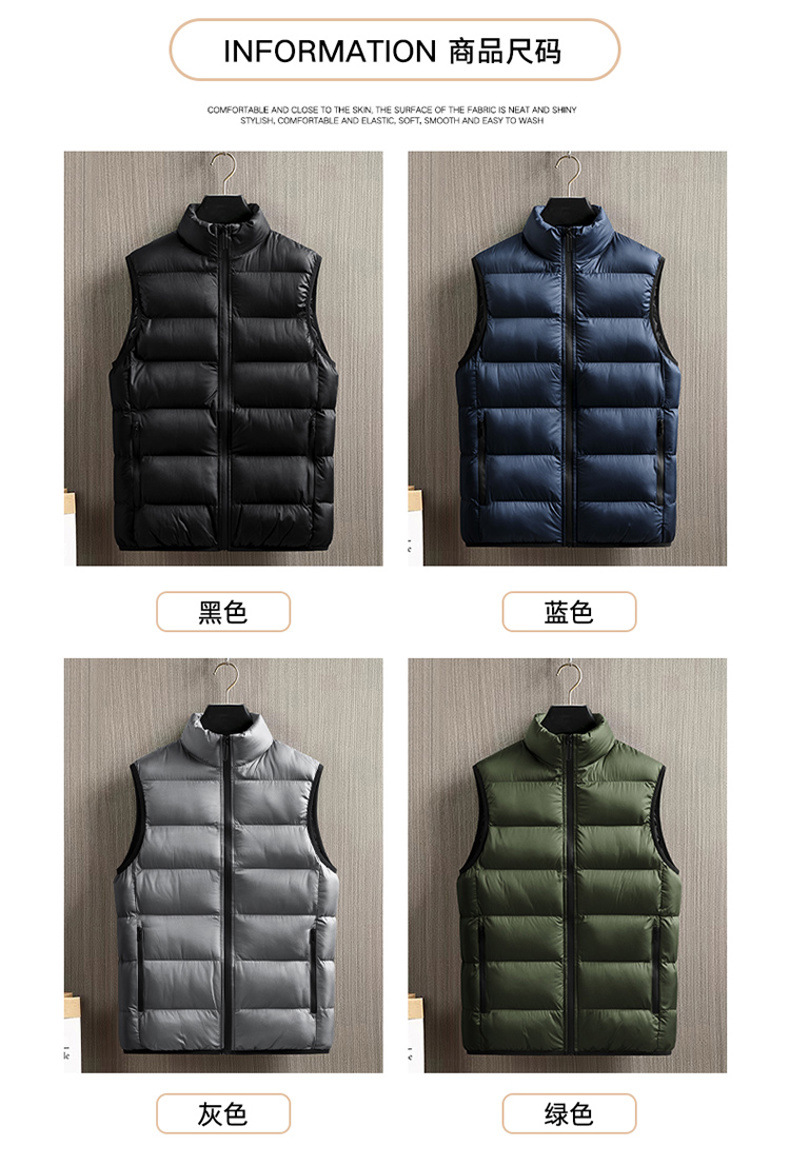 다운 코튼 조끼 겨울 두꺼운 따뜻한 재킷 남자의 단색 칼라 캐주얼 코튼 조끼 최고 남자 탑