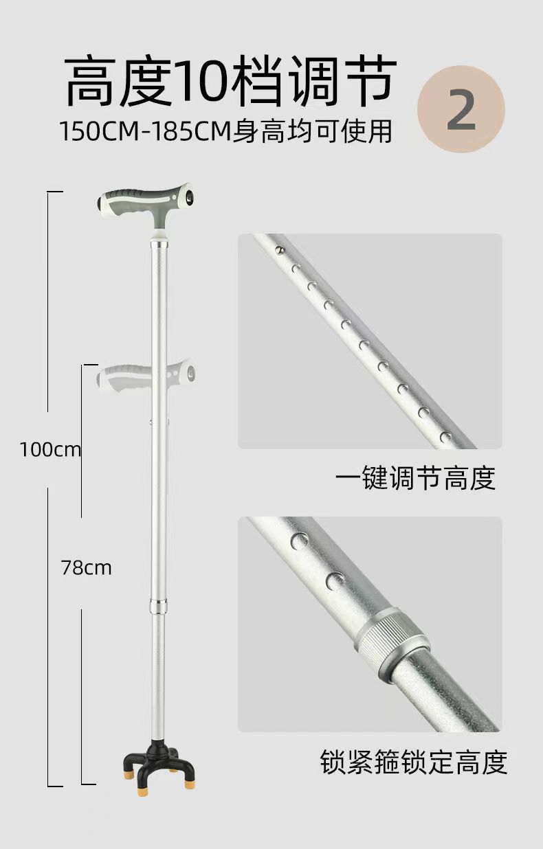 노인을위한 미끄럼 방지 보행 보조 경량 알루미늄 합금 목발 지팡이 안티 폴 4 다리 목발 보행 보조 보행 보조 장치