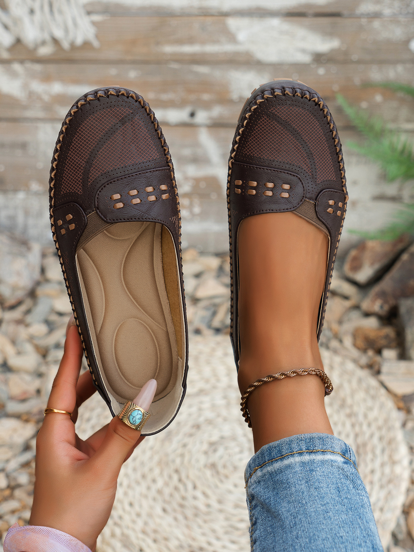 플러스 사이즈 새로운 대외 무역 스티칭 레이저 숙녀 플랫 바닥 로퍼 대외 무역 국경 전자 상거래 공급스토어 가기