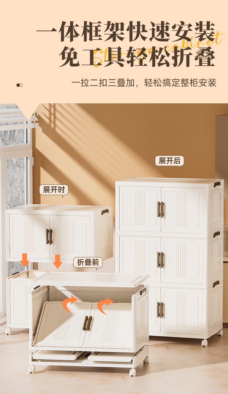 무료 설치 접이식 저장 상자 가정용 거실 장난감 저장 캐비닛 저장 상자 스낵 캐비닛 주방 플라스틱 보관 캐비닛