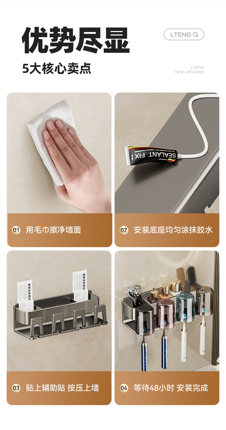 • [4인 모델] 건그레이 칫솔꽂이 - 컵 포함