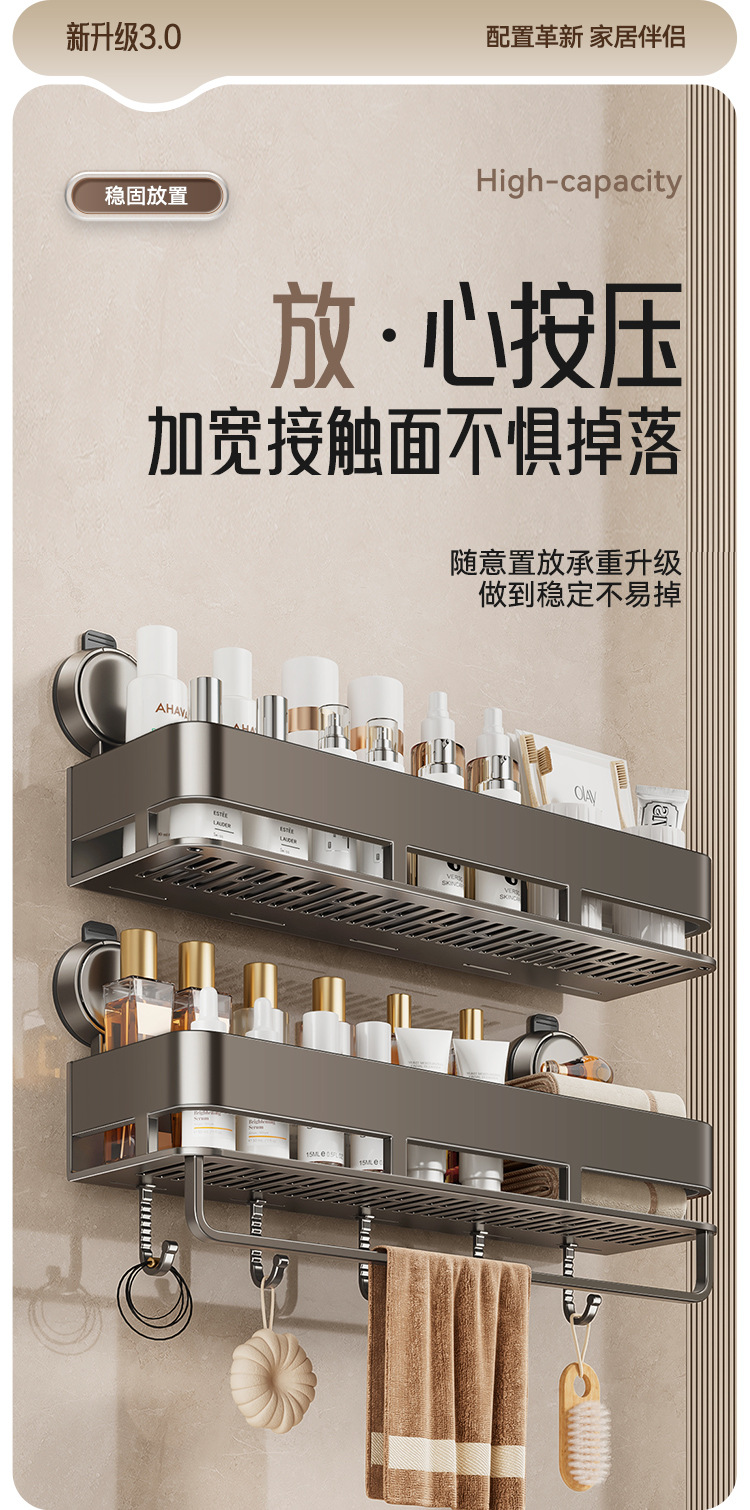 • 30CM 더블 레이어 - 막대와 후크 포함 [강력한 흡착, 몇 초 만에 설치/자유롭게 위치 변경]
