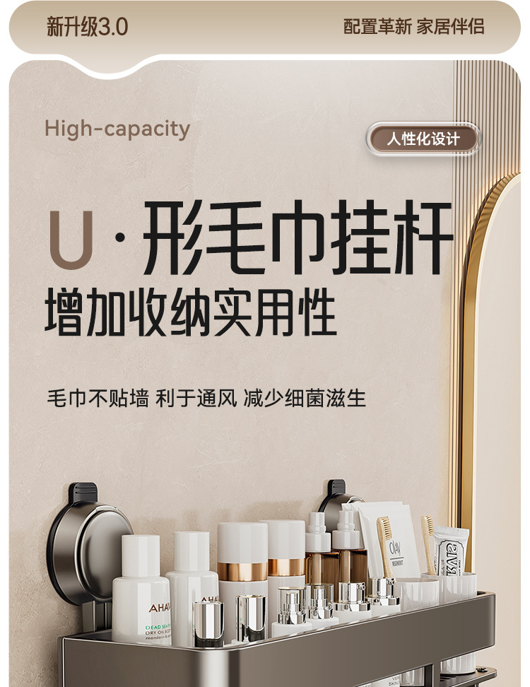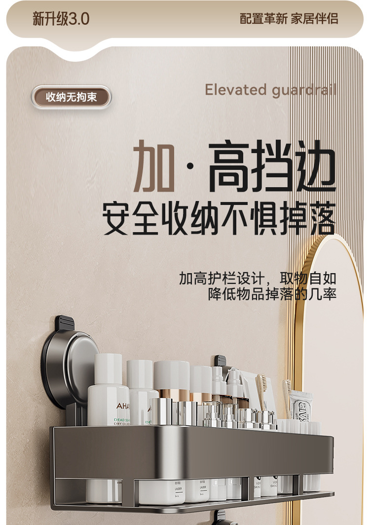 석션 컵 화장실 욕실 랙 건 애쉬 펀치 프리 화장실 세면대 벽걸이 형 스토리지 랙