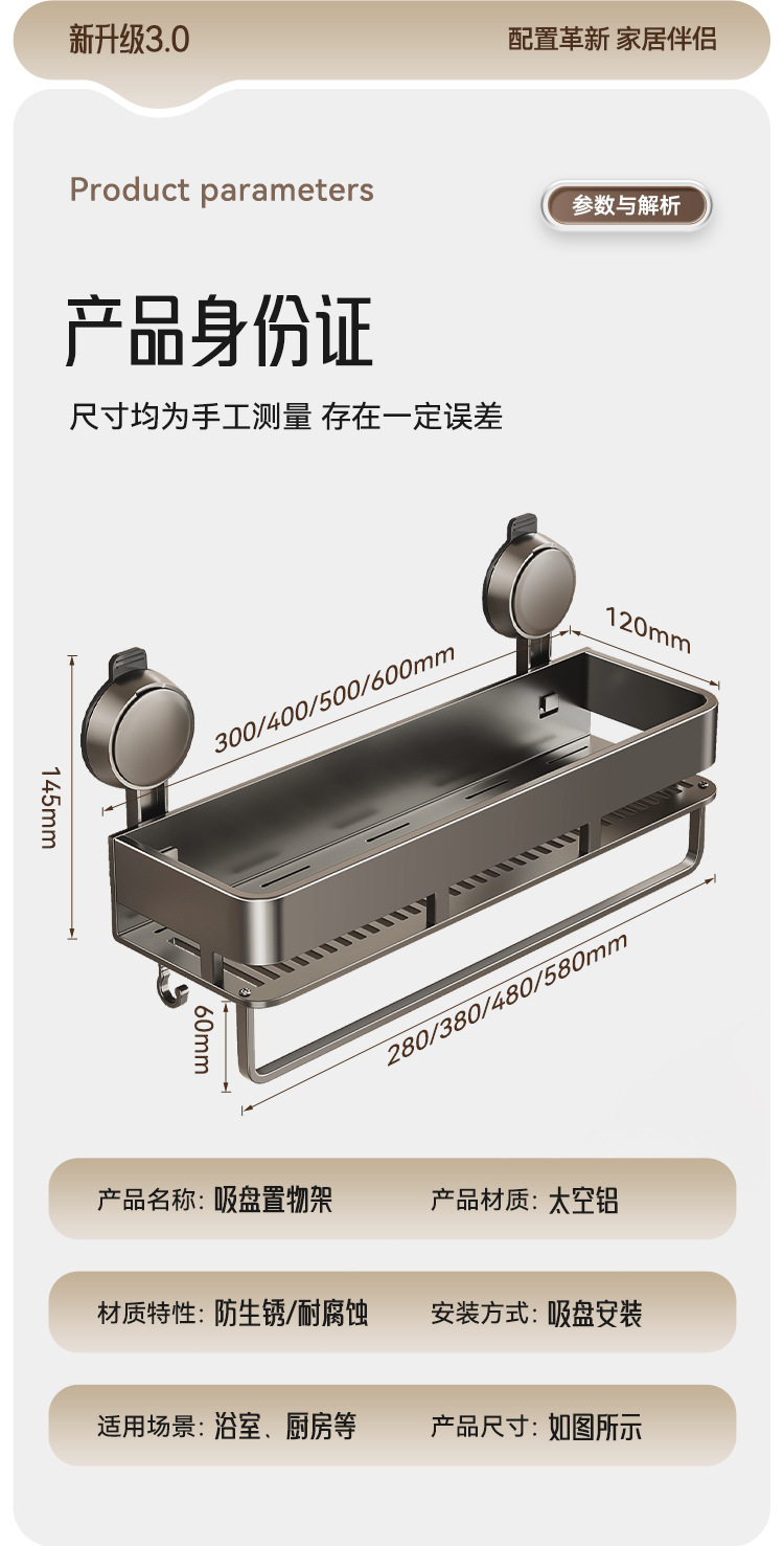 • 60CM 단일 레이어 [강력한 흡착, 몇 초 만에 설치/원하는 위치 변경]