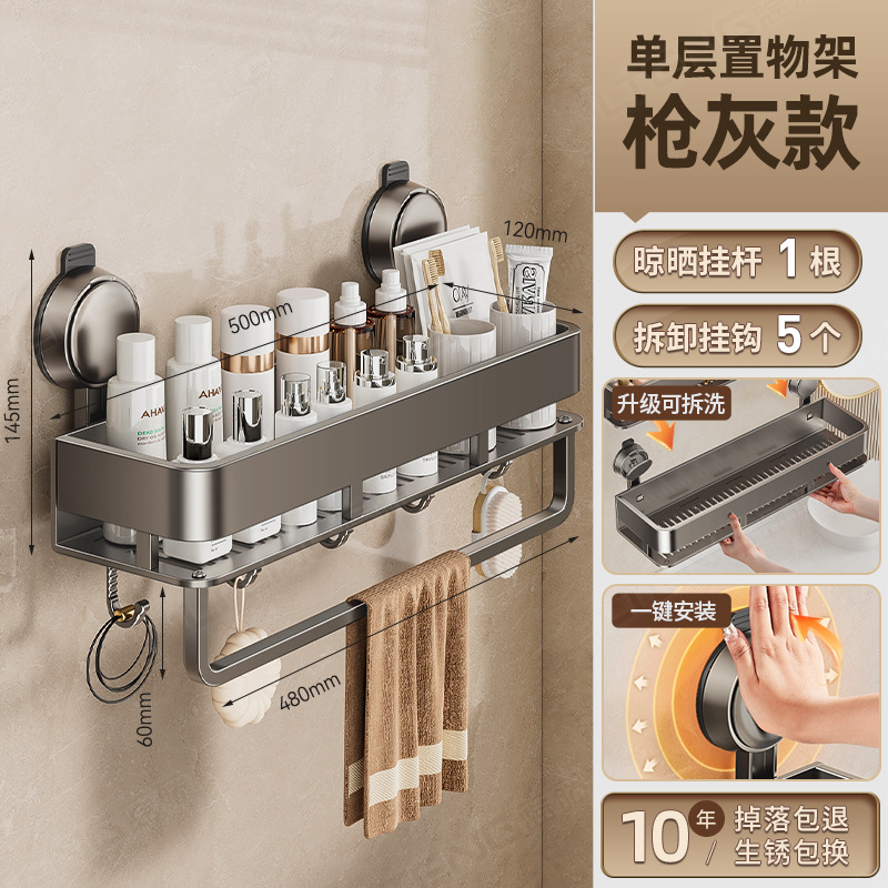 • 60CM 단일 레이어 - 막대 및 후크 포함 [강력한 흡착, 몇 초 만에 설치/원하는 위치 변경]