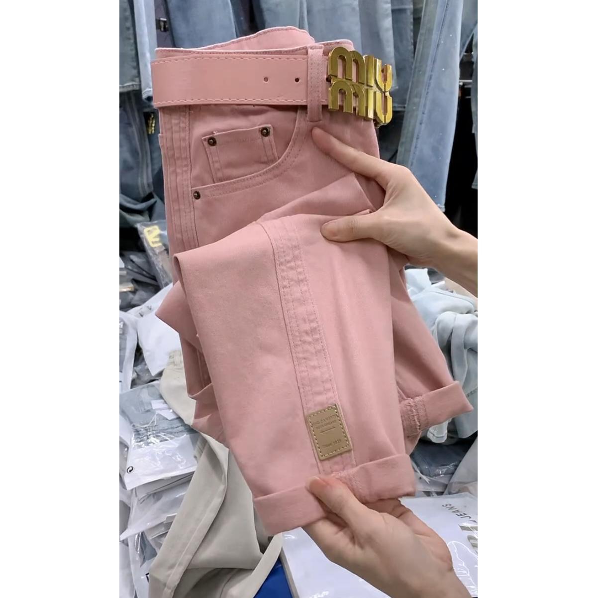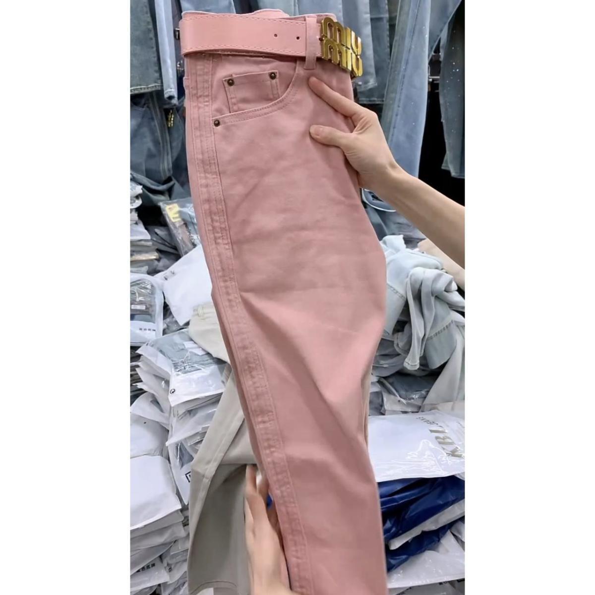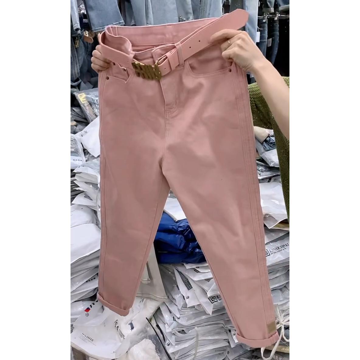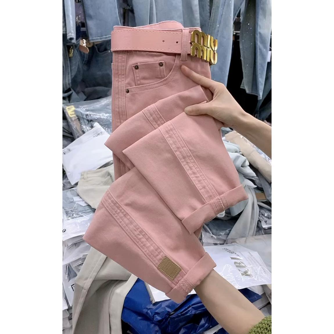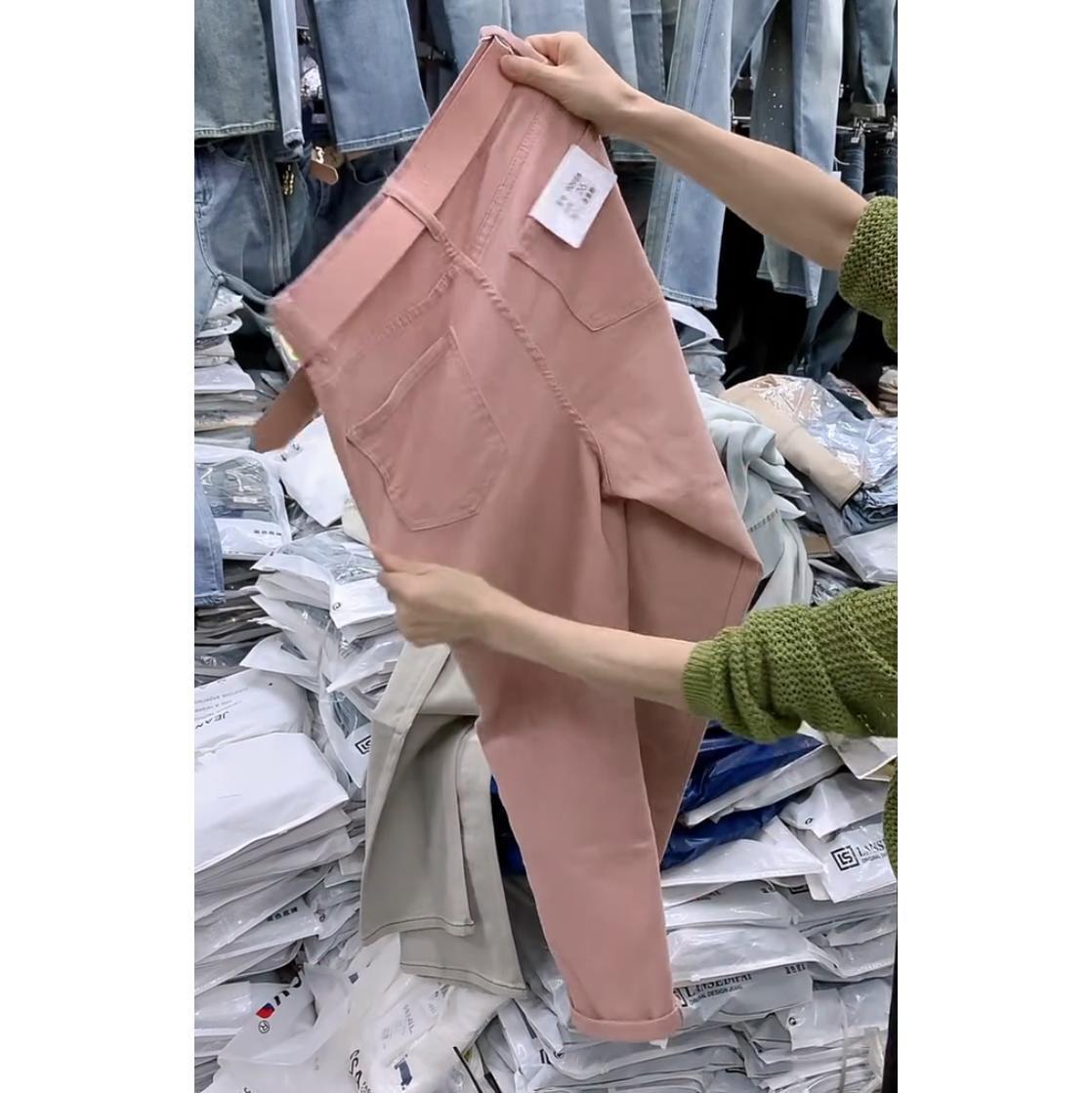 플러스 사이즈 여성 바지 핑크 할란 청바지 2024 가을 새 배 모양의 몸 통통녀 느슨한 토르 바지스토어 가기
