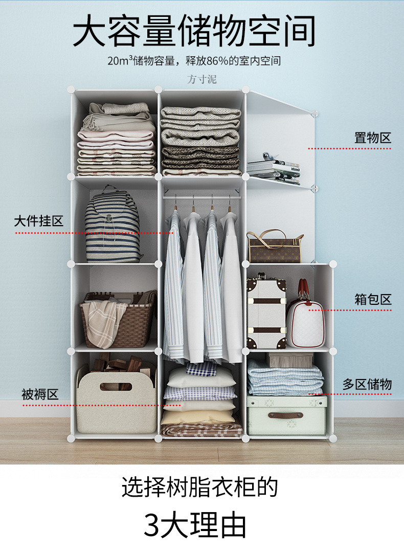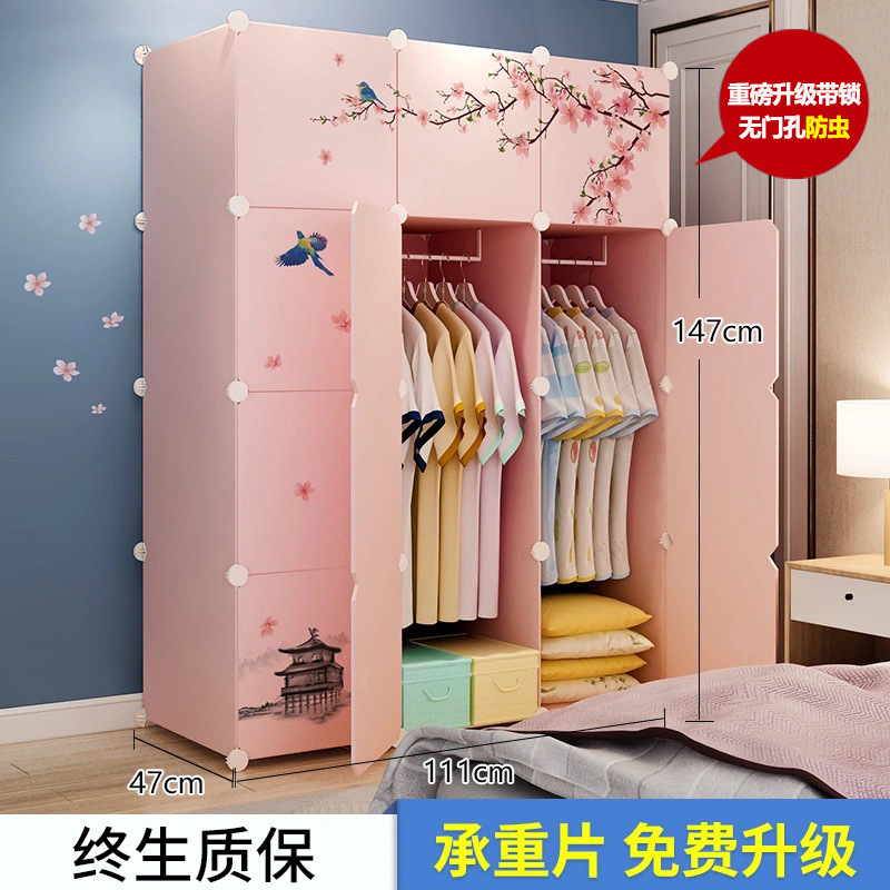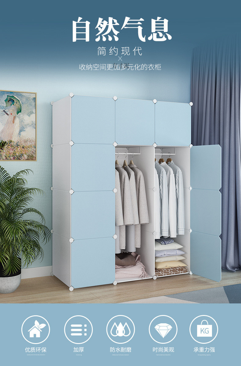 옷장 임대 방 간단한 옷장 침실 가구 플라스틱 옷감 강화 옷 캐비닛 2024 강한 아이들