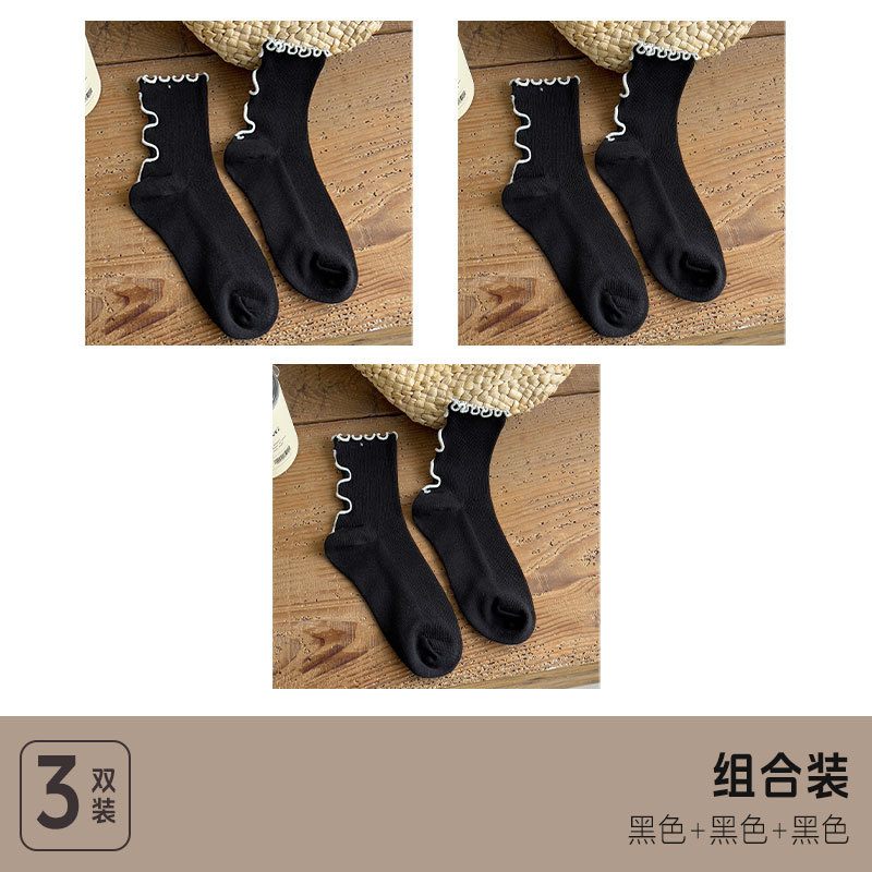 Auricularia 레이스 양말 여성 중간 길이의 스타킹 봄 및 가을 다크 브라운 가을 및 겨울 필 스타킹 일본 소녀 스타킹 여성 스타킹
