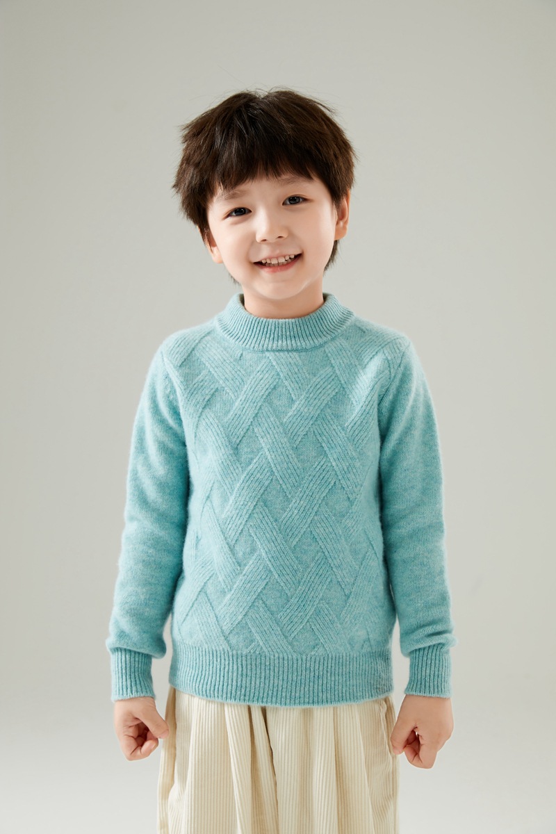 어린이 가을과 겨울 두꺼운 울 스웨터 하프 터틀넥 울 스웨터 풀오버 Rhomboid베이스 탑