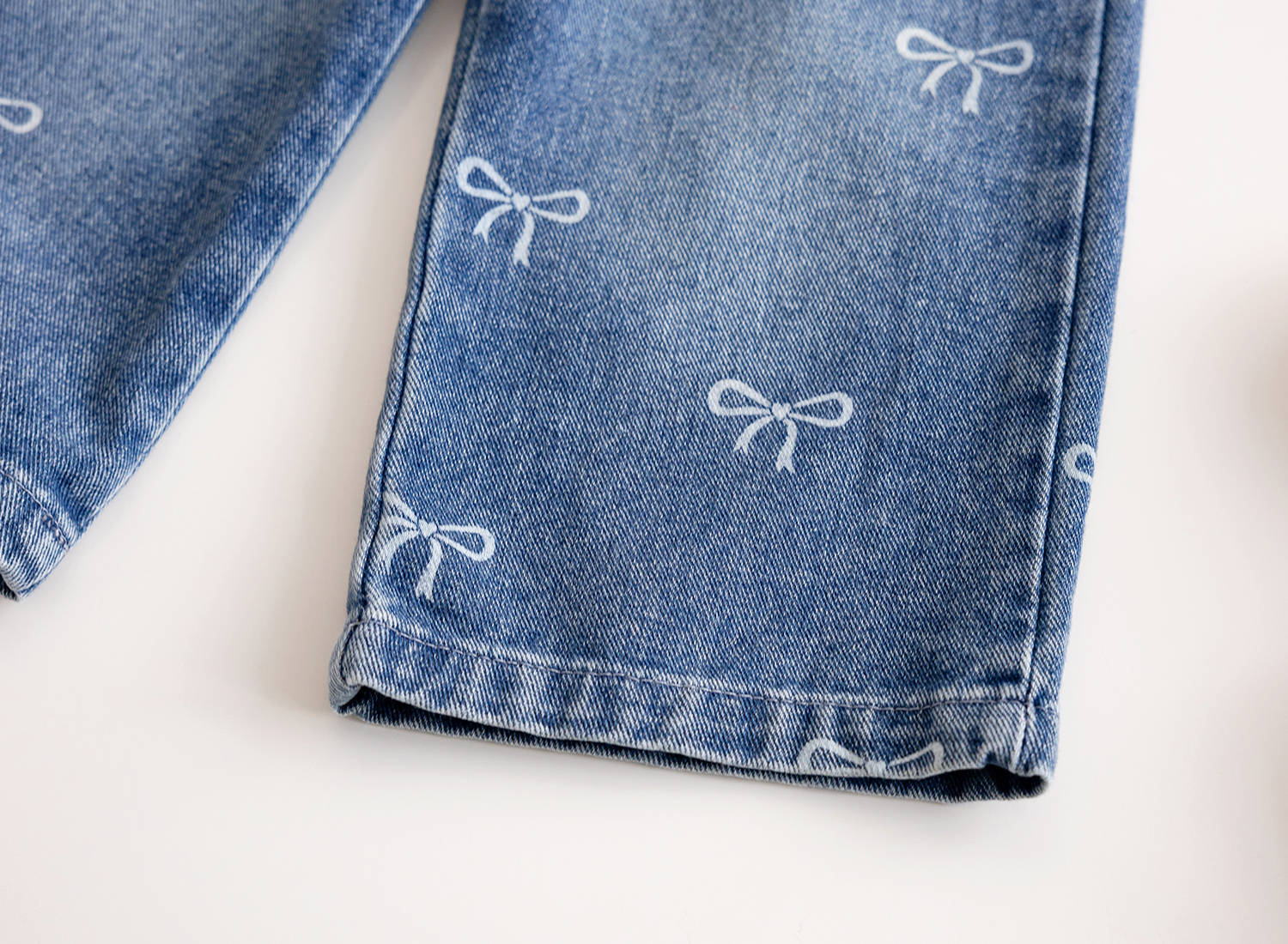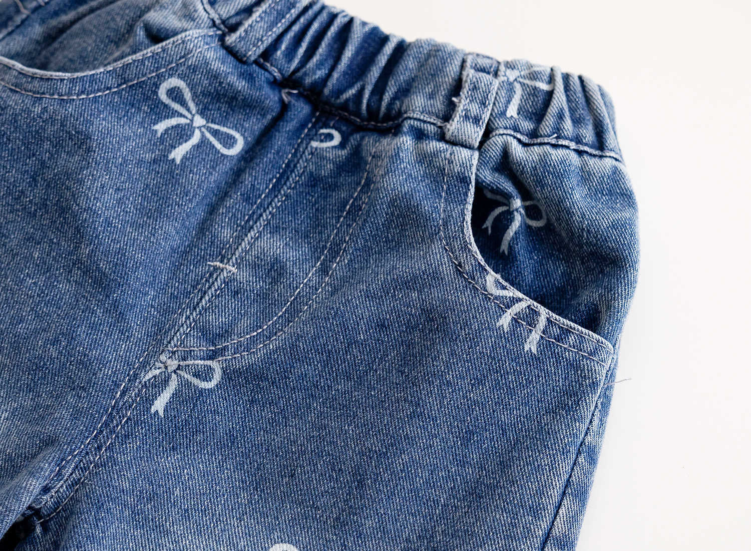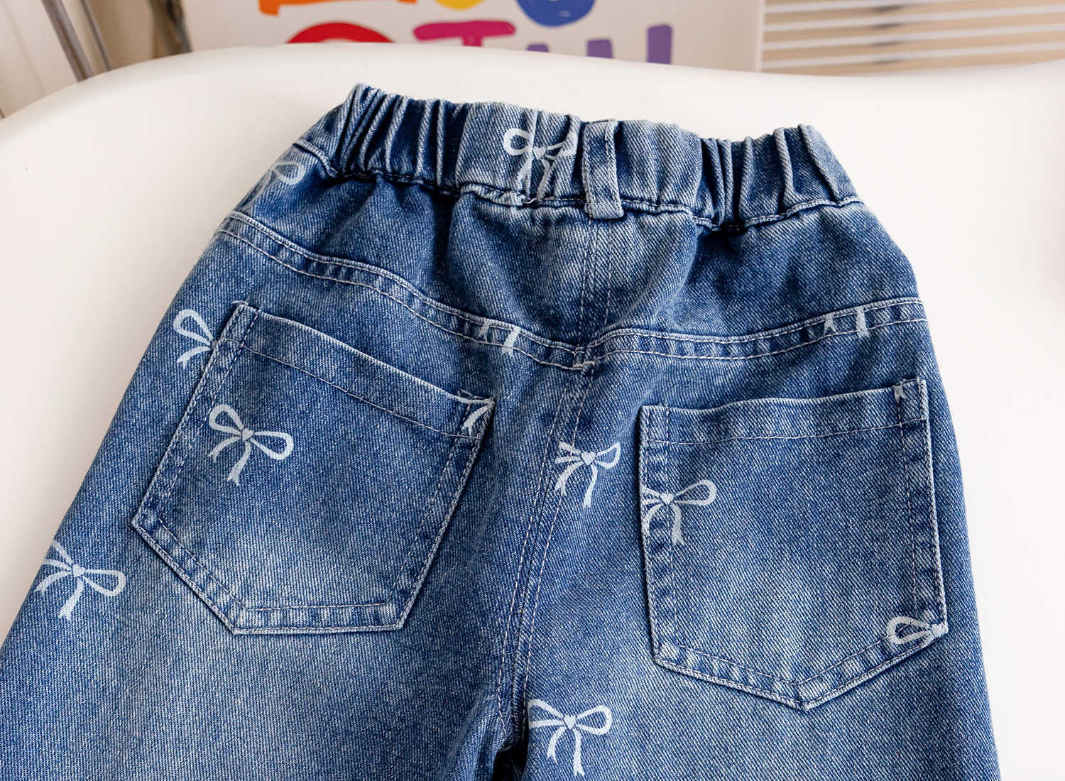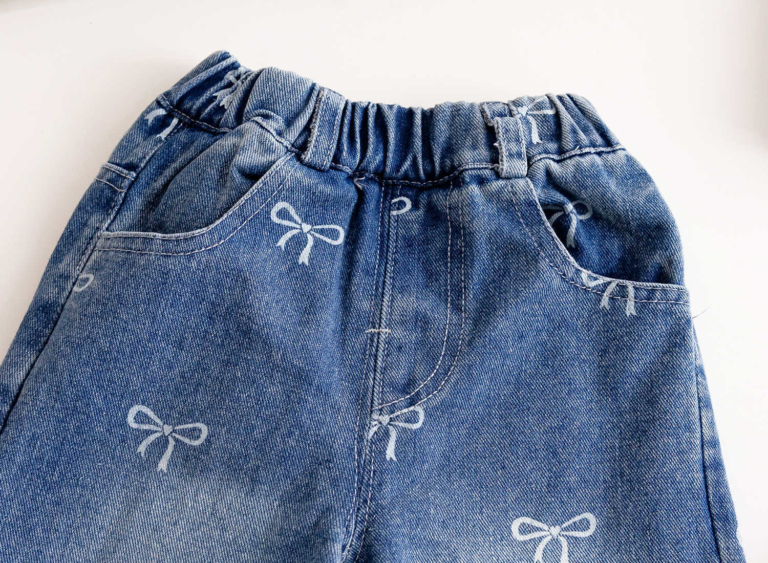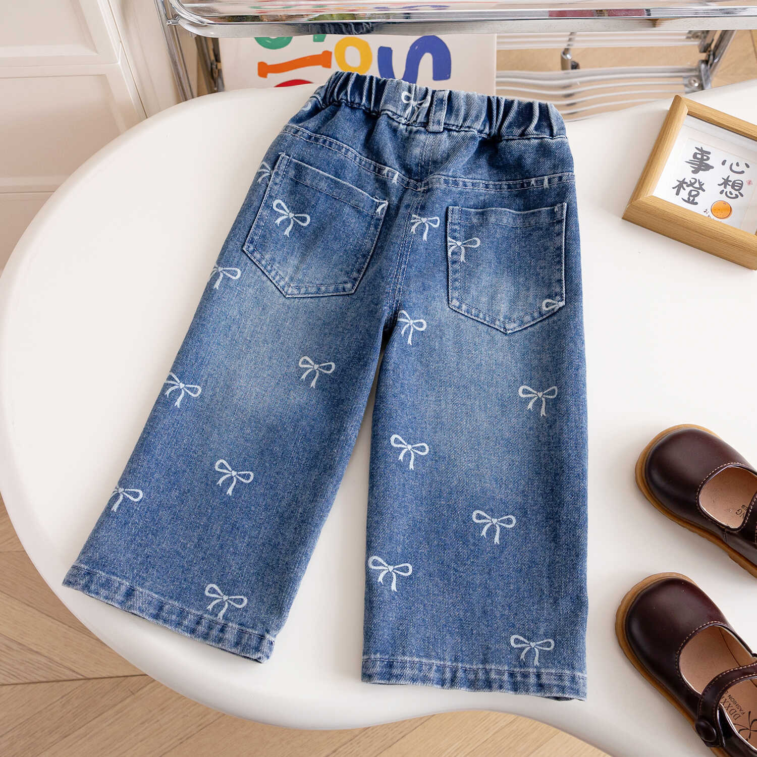 여아 리본 청바지 2025 가을 신작 한국식 외국 스타일 풀 프린트 다용도 루즈 팬츠 트렌디 스트레이트 청바지스토어 가기