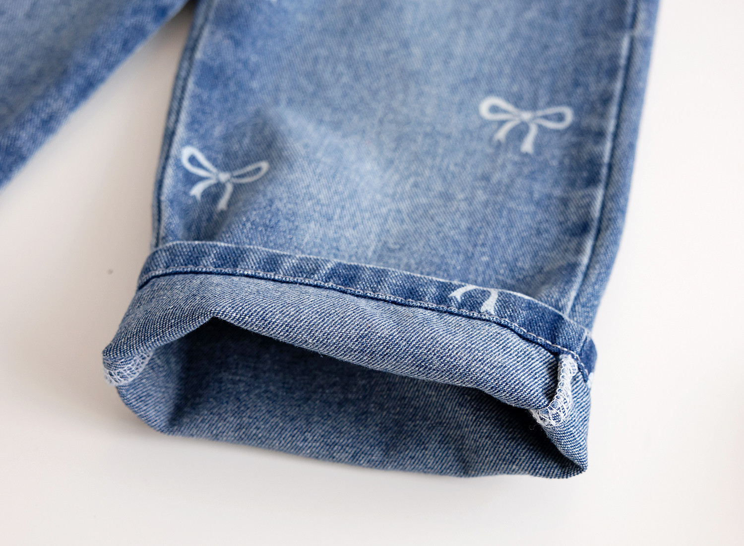 여아 리본 청바지 2025 가을 신작 한국식 외국 스타일 풀 프린트 다용도 루즈 팬츠 트렌디 스트레이트 청바지