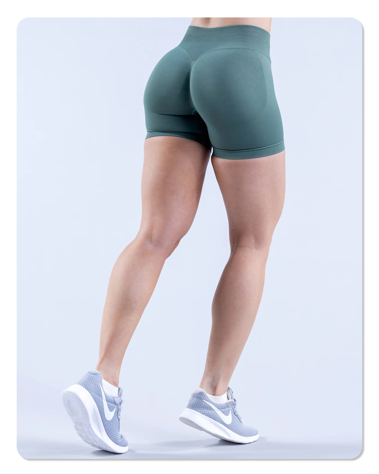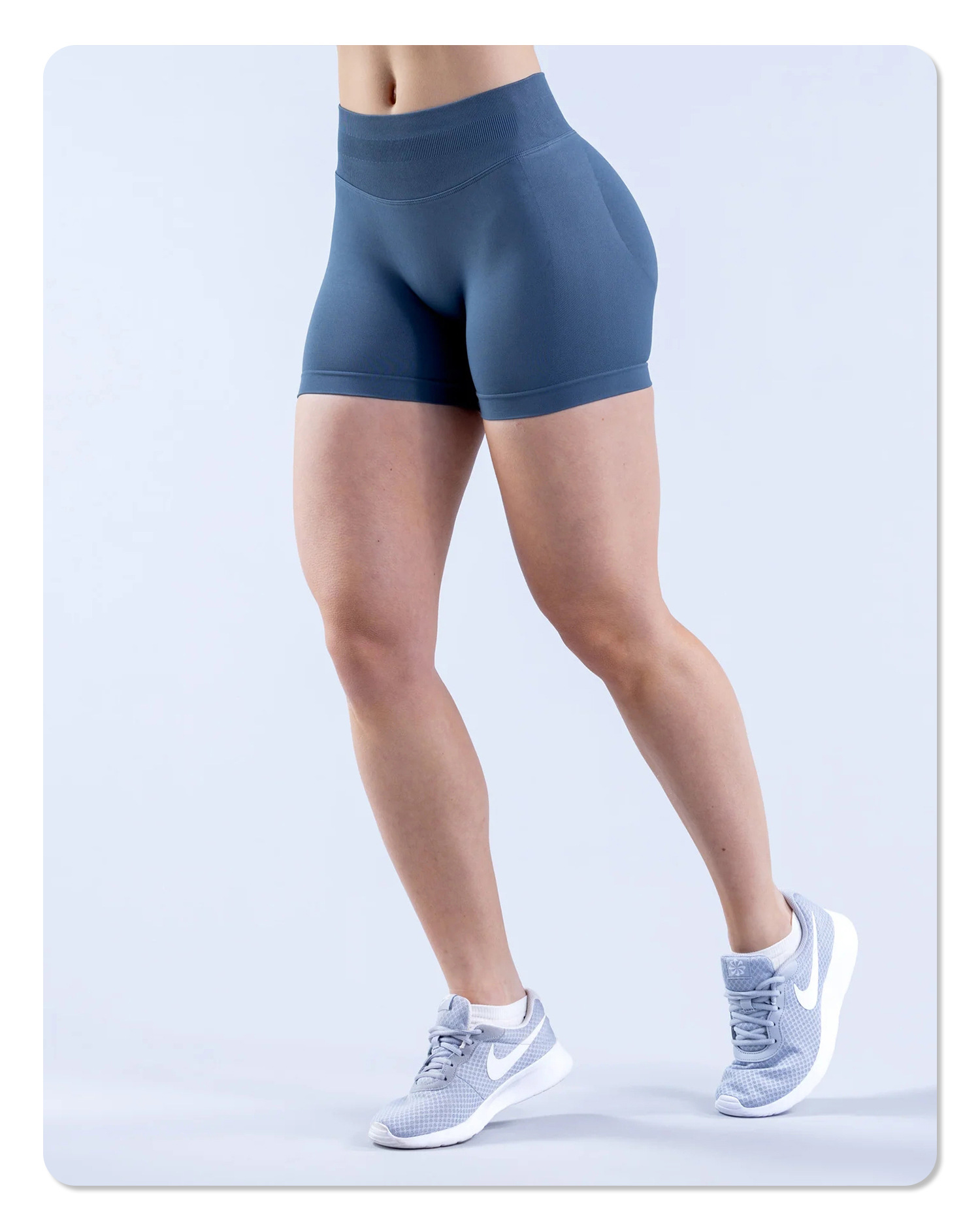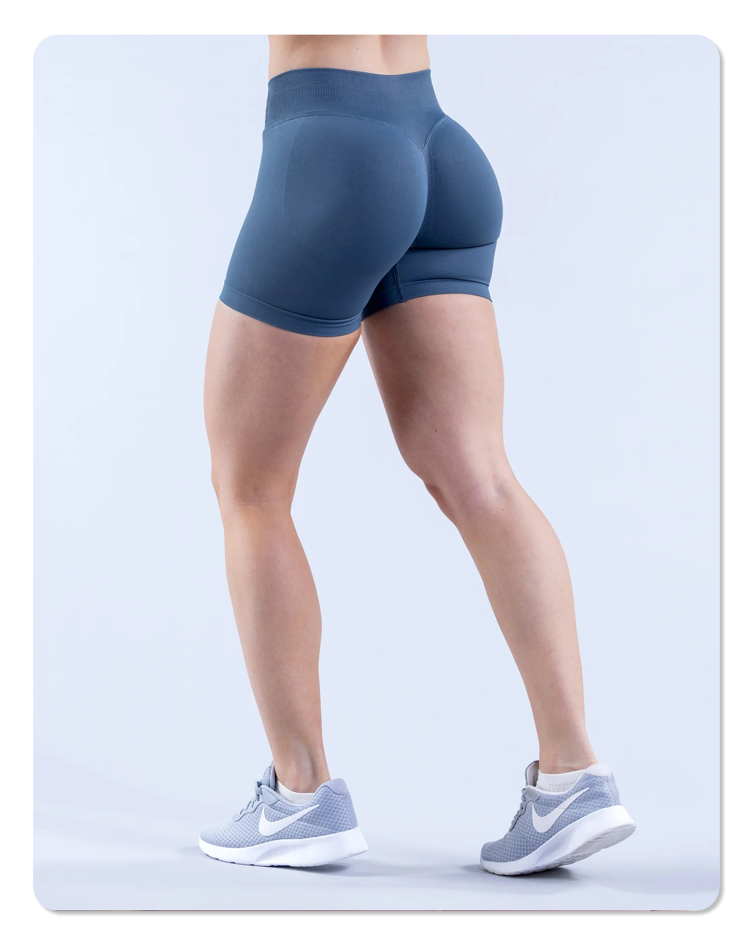 DFYNE 반바지 고탄성 나일론 3단 허리 주름 엉덩이 리프팅 심리스 로우 웨이스트 3점 바지 여성용 피트니스 요가 반바지