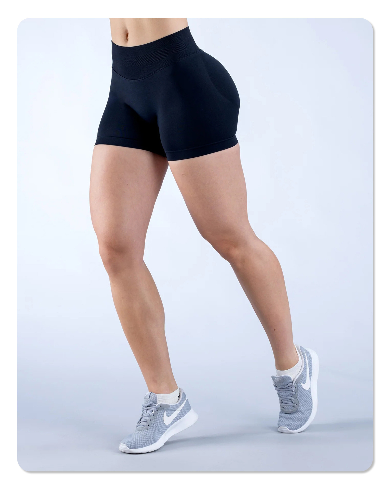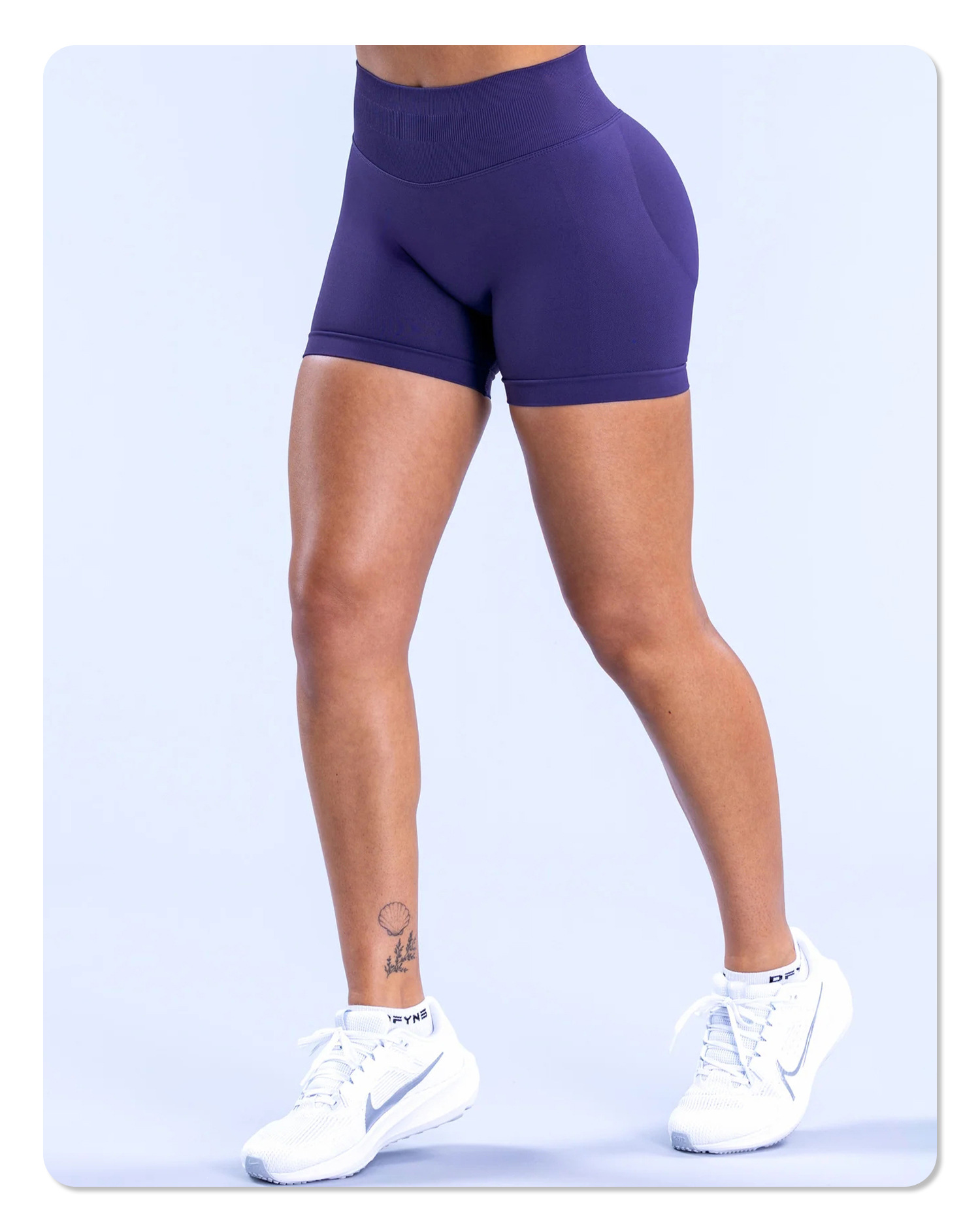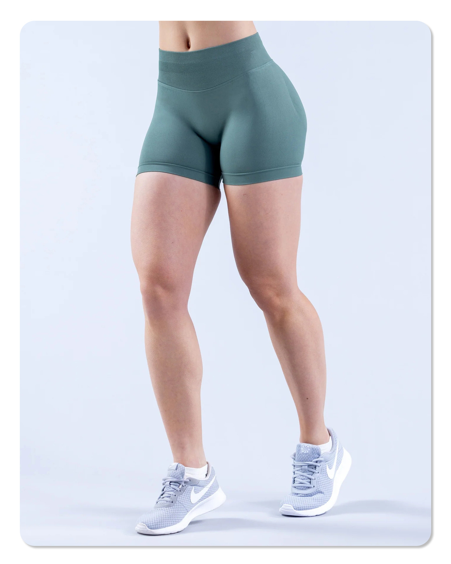 DFYNE 반바지 고탄성 나일론 3단 허리 주름 엉덩이 리프팅 심리스 로우 웨이스트 3점 바지 여성용 피트니스 요가 반바지