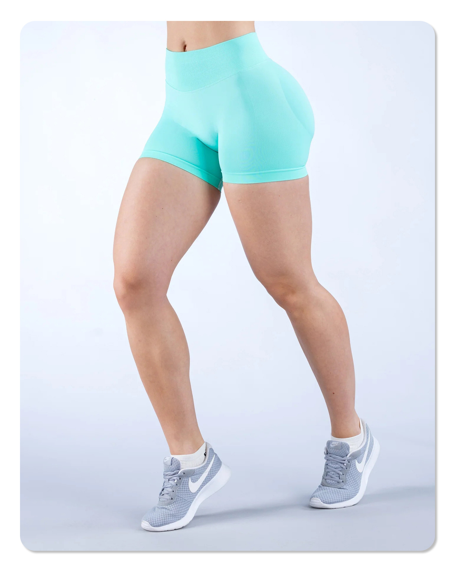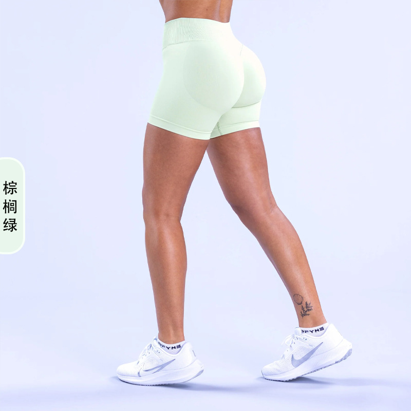 DFYNE 반바지 고탄성 나일론 3단 허리 주름 엉덩이 리프팅 심리스 로우 웨이스트 3점 바지 여성용 피트니스 요가 반바지스토어 가기