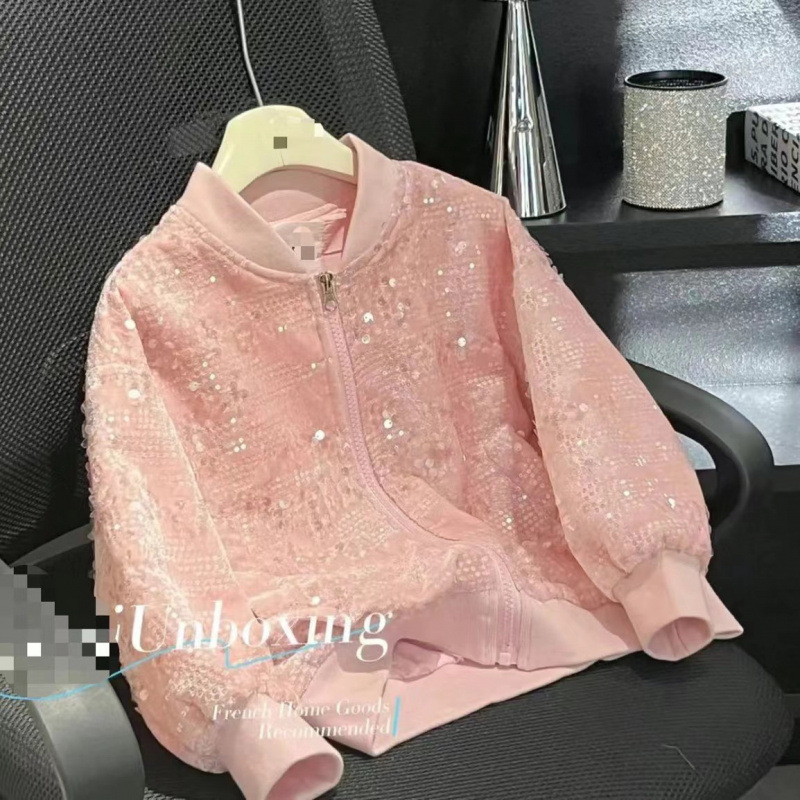 소녀 코트 봄과 가을 2024 새로운 서양식 아기 소녀 Sequin 유행 탑 한국 스타일 어린이 가을 재킷스토어 가기