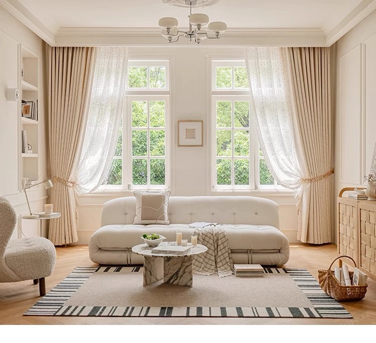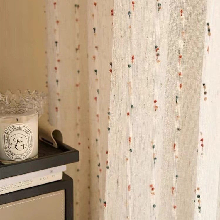 레인보우 완두콩 코튼 리넨 크림 윈드 커튼 고급 감각 어린이 침실 음영 체니 레트로 윈드 커튼