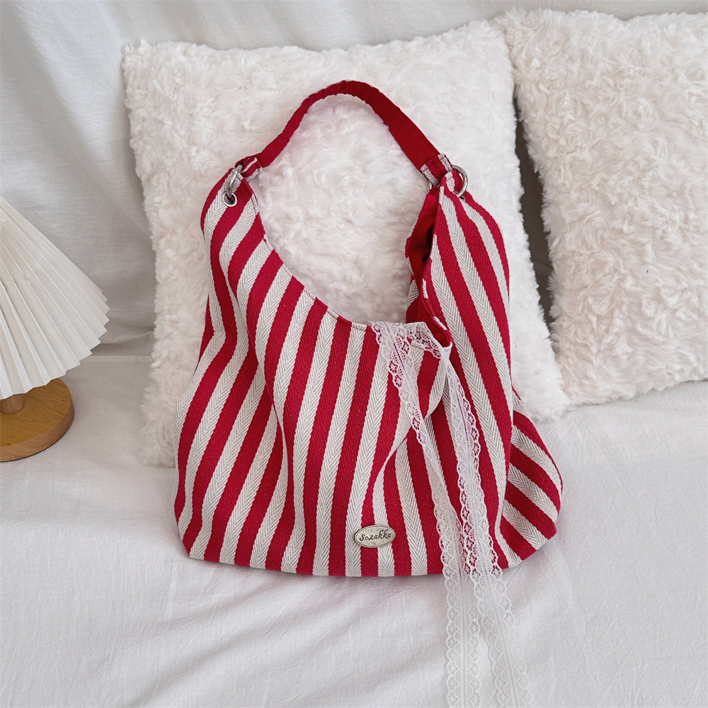48302 새로운 수직 줄무늬 유행 대용량 캔버스 가방 스타일 간단한 편지 통근 핸드백 어깨 가방