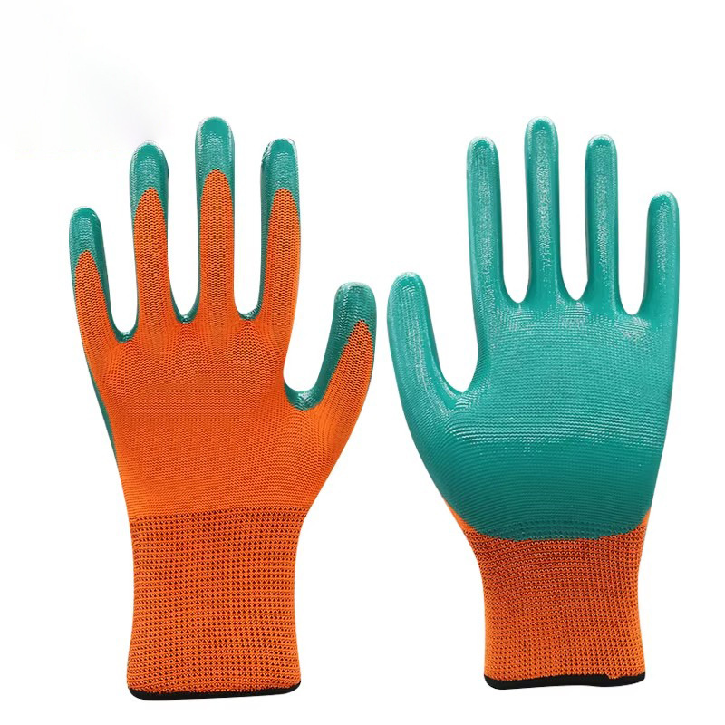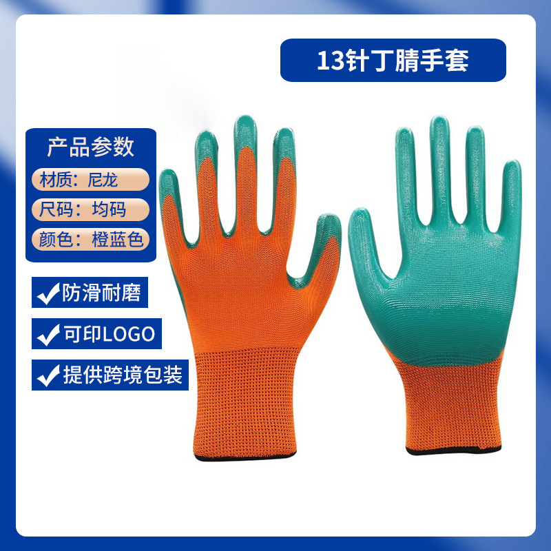 13핀 나일론 니트릴 오렌지 원사 녹색 노동 보호 장갑 내마모성 딥핑 미끄럼 방지 내유성 통기성 작업 기계 건설 현장 유지 관리