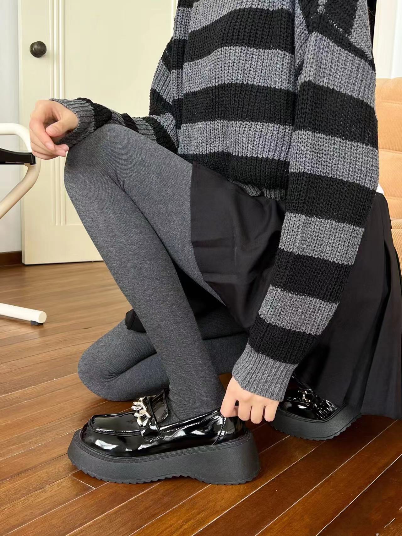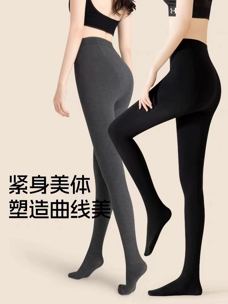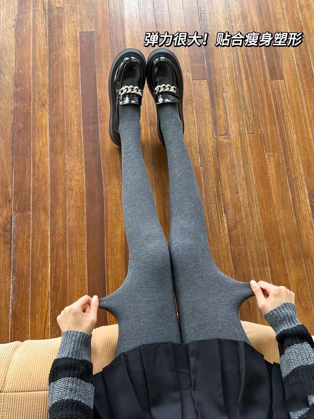 2024 가을과 겨울 통합 빗질 면 수직 스트립 매트 마이크로 압력 슬리밍 다리 기모 두꺼운 베이스 팬티 스타킹스토어 가기