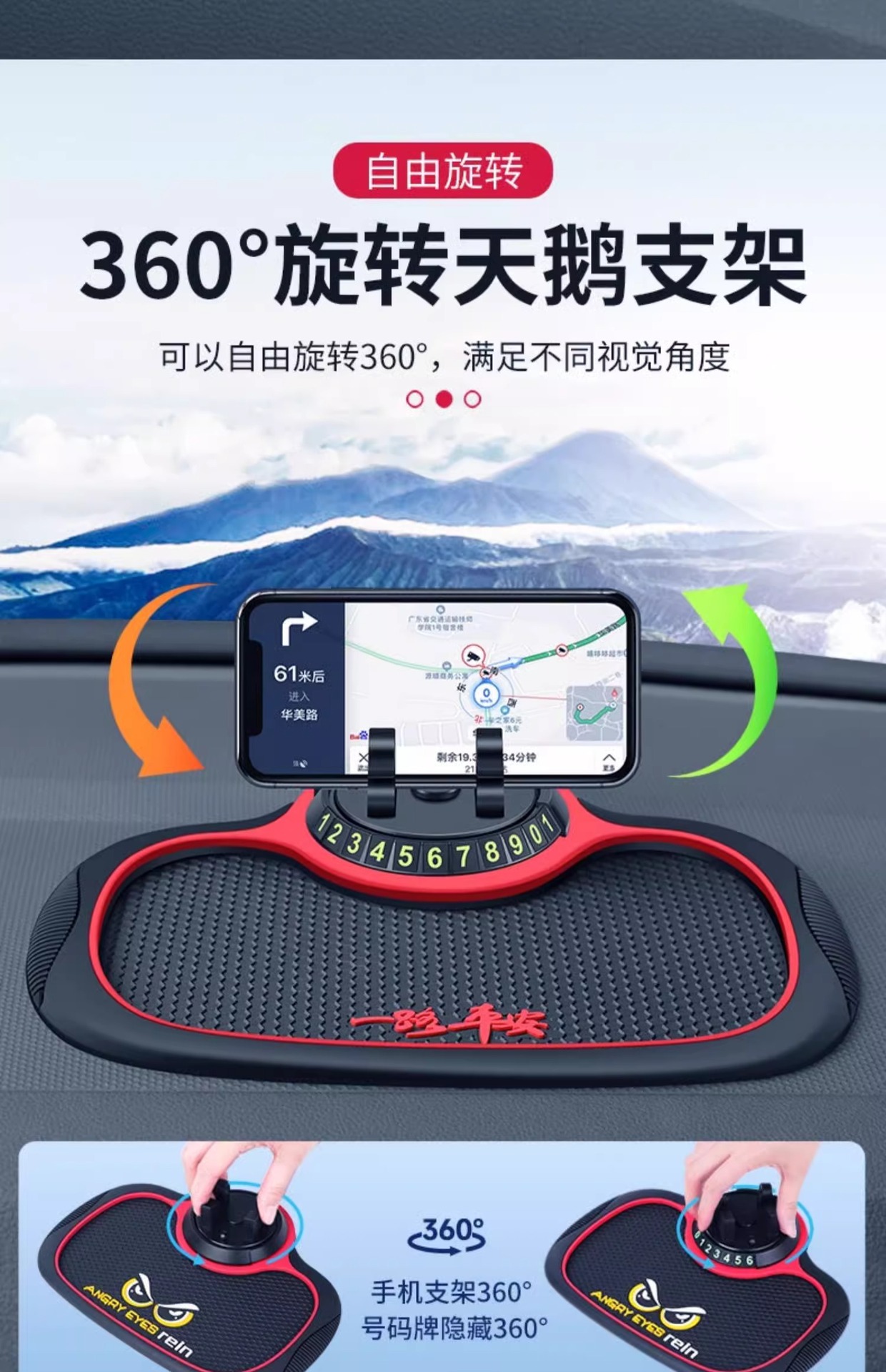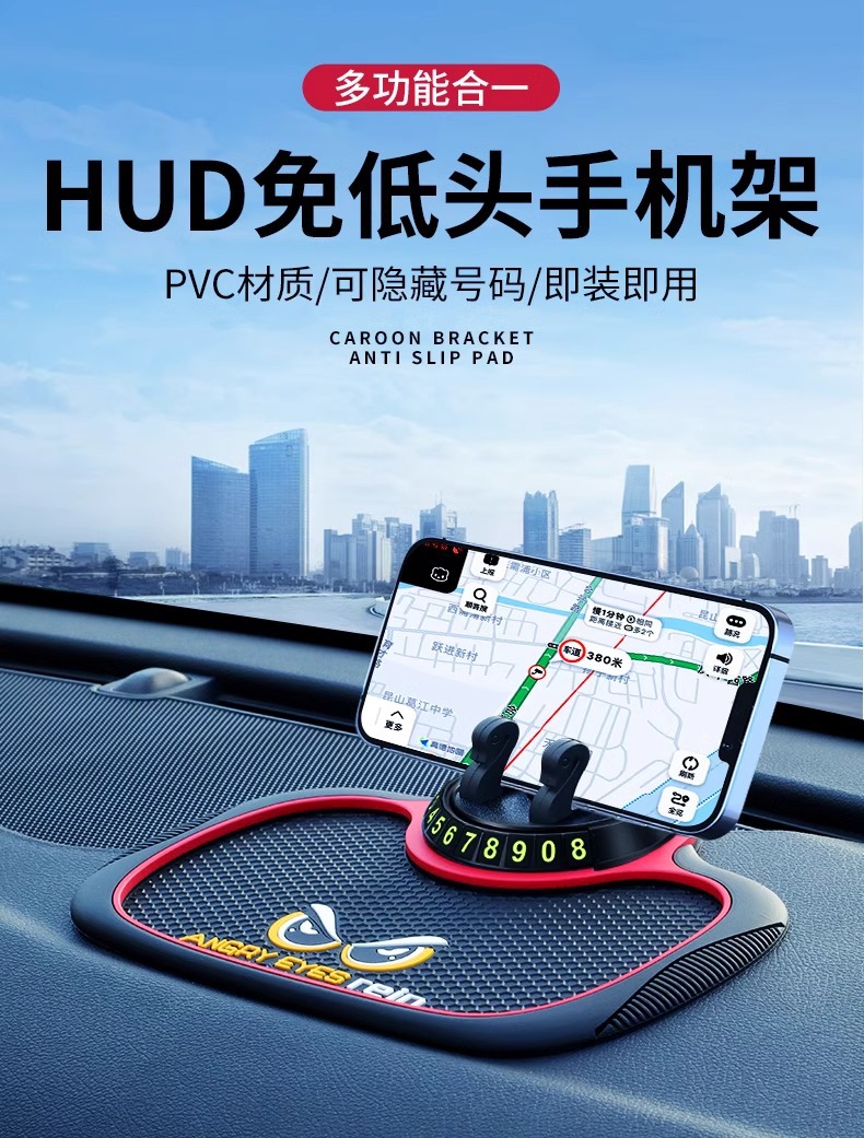 • [만화 스타일] Angry Bird | 3-in-1 (미끄럼 방지 매트 + 휴대폰 홀더 + 숨겨진 번호판)