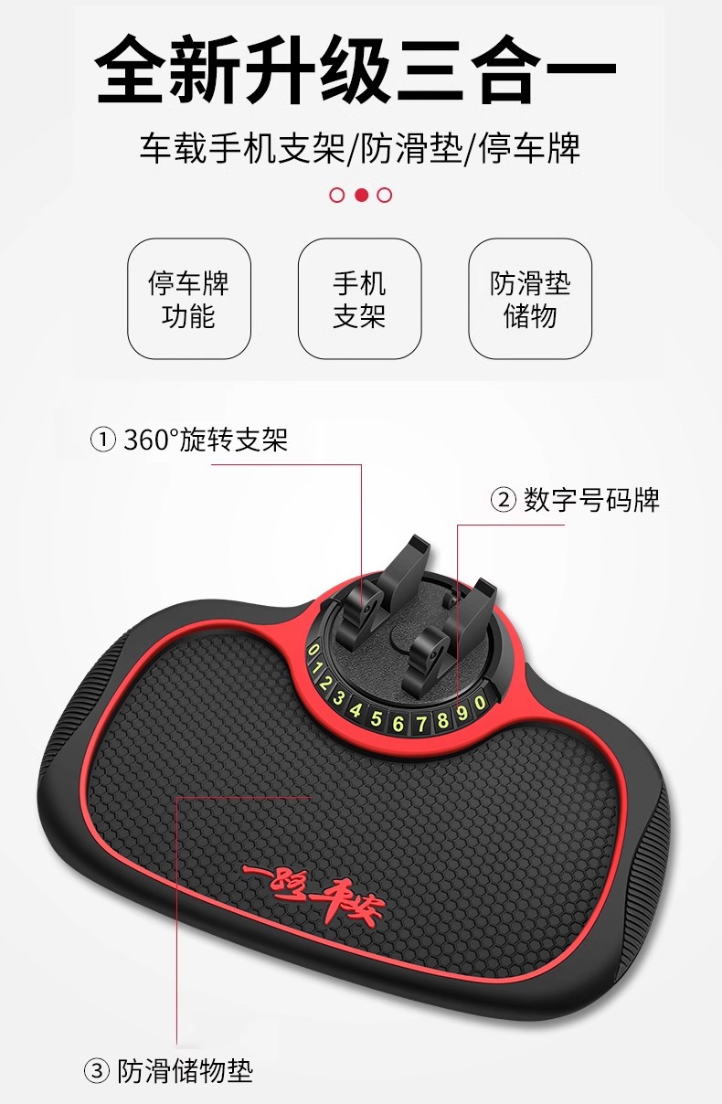 • [안전한 여행 되세요] 블랙 엣지丨 쓰리인원 모델 (미끄럼 방지 매트 + 휴대폰 거치대 + 숨겨진 번호판)