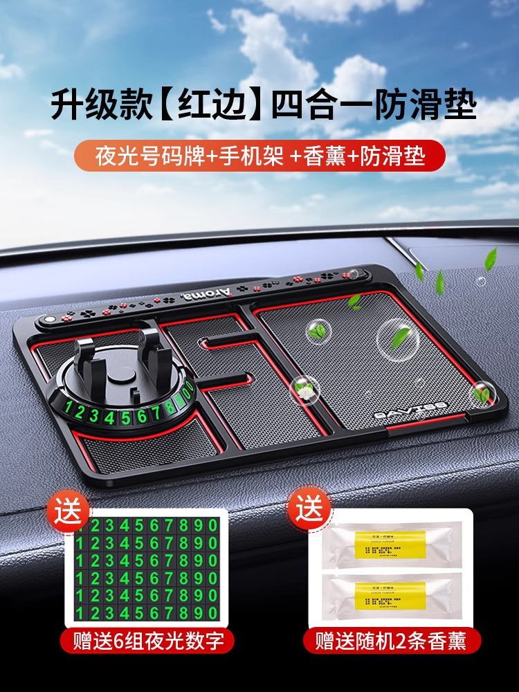 • 업그레이드된 클래식 레드 엣지丨포인원(미끄럼 방지 매트 + 스탠드 + 번호판 + 아로마테라피)
