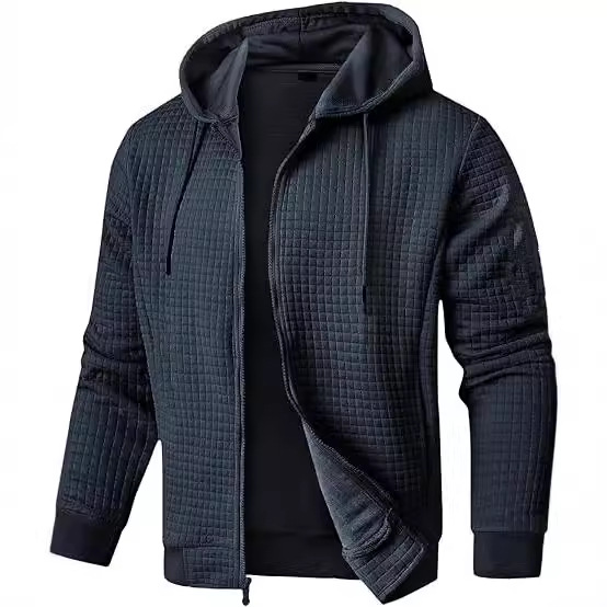 2025 크로스보더 유럽 및 미국 남성용 경량 후드 스웨트셔츠 풀 지퍼 와플 스웨트셔츠 캐주얼 재킷