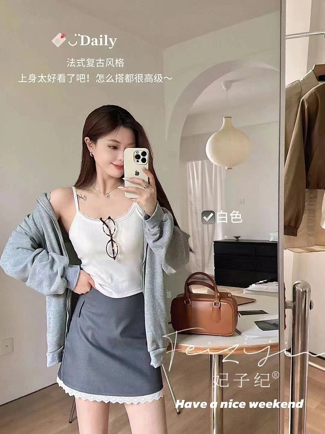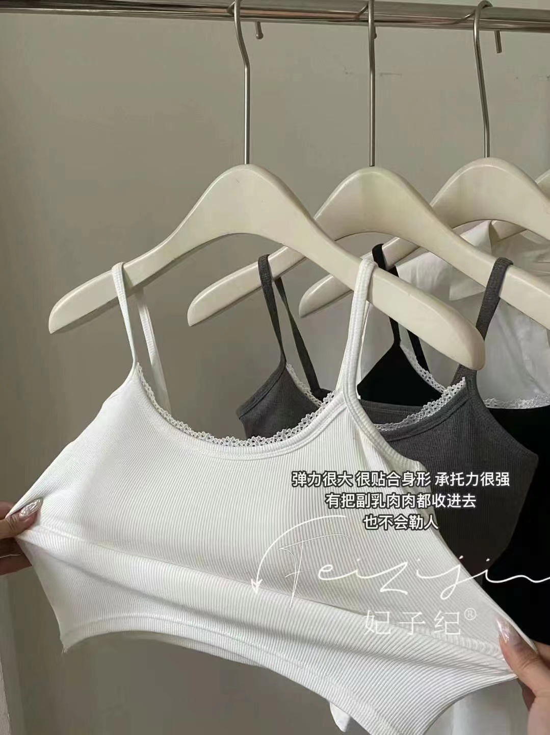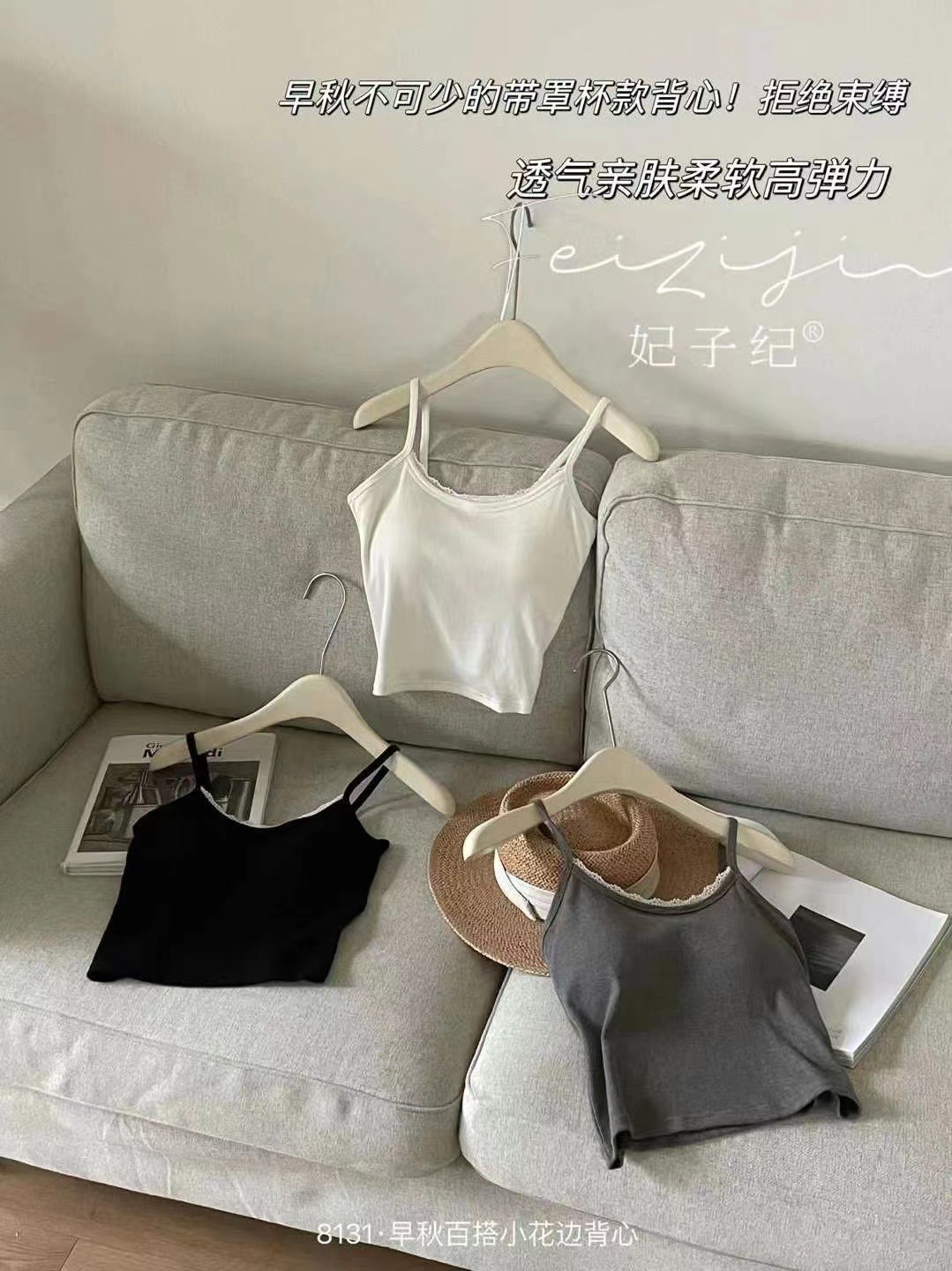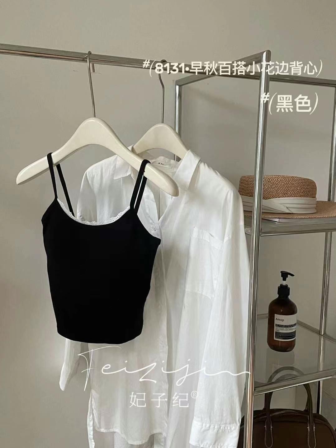 8131 이른 가을 새로운 작은 조끼 고정 컵 가슴 패드 대비 컬러 레이스 칼라 아름다운 뒤 슬링 슬림 핏 슬리밍 탑스토어 가기