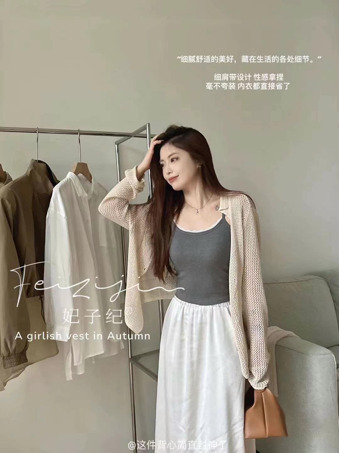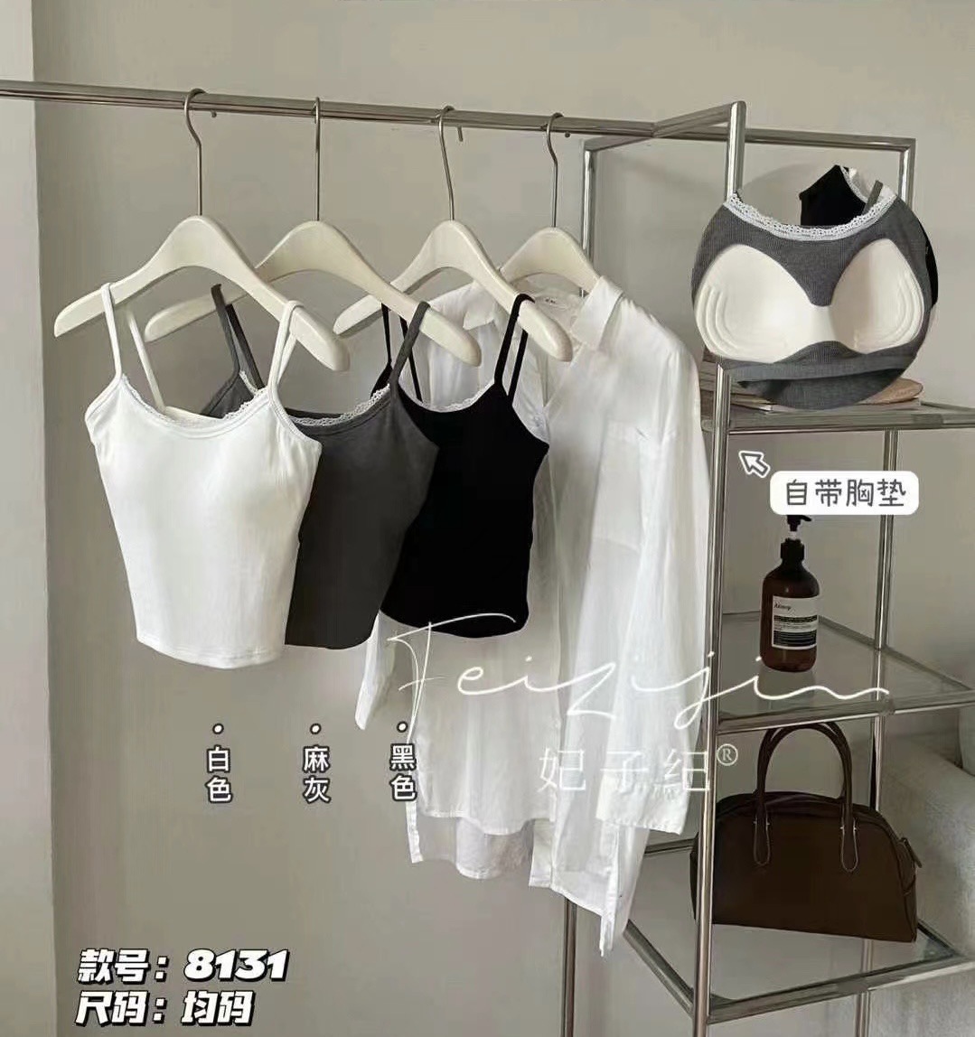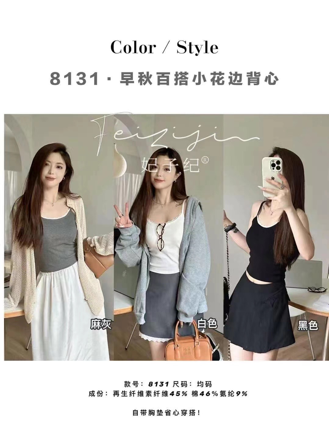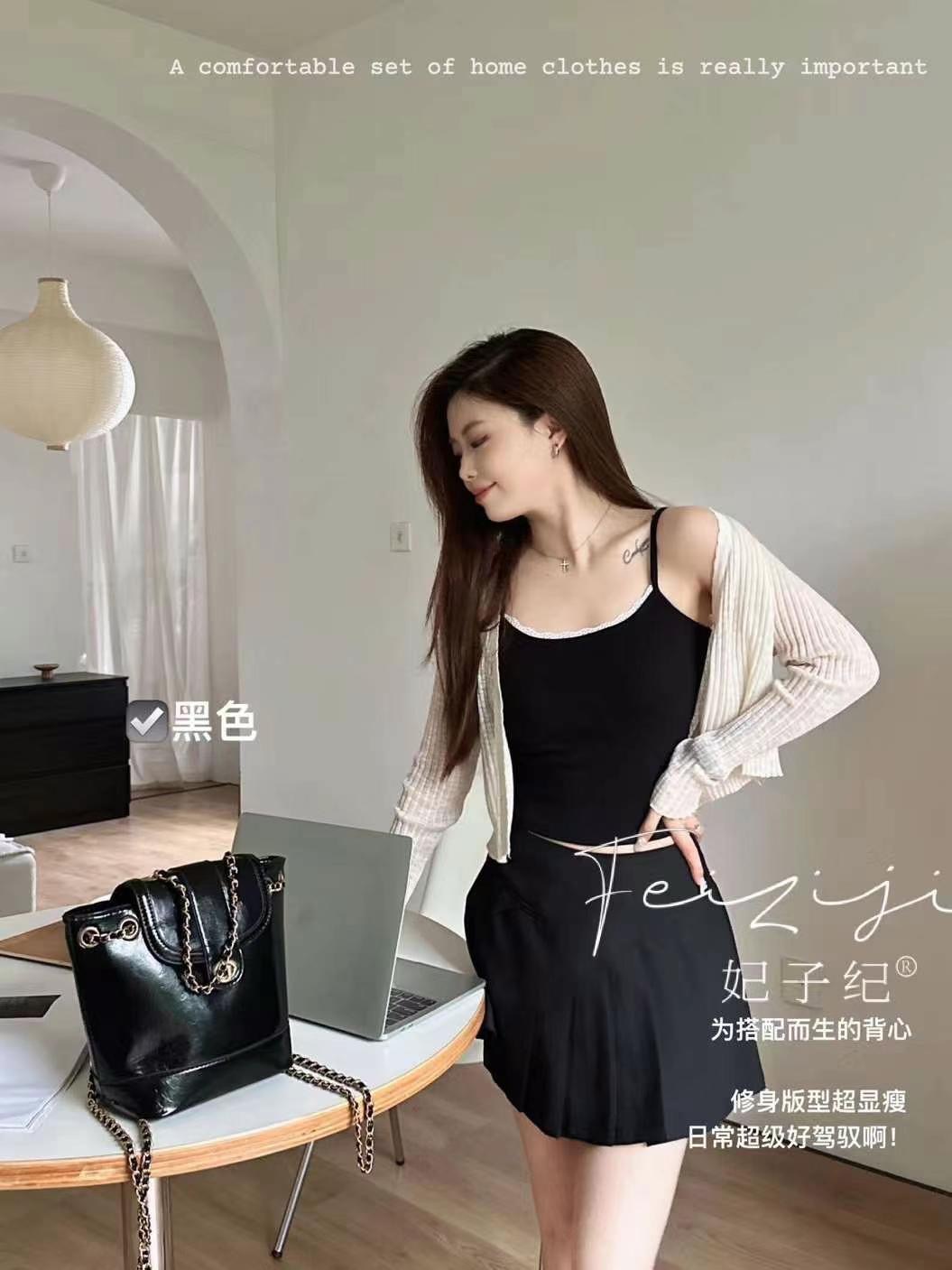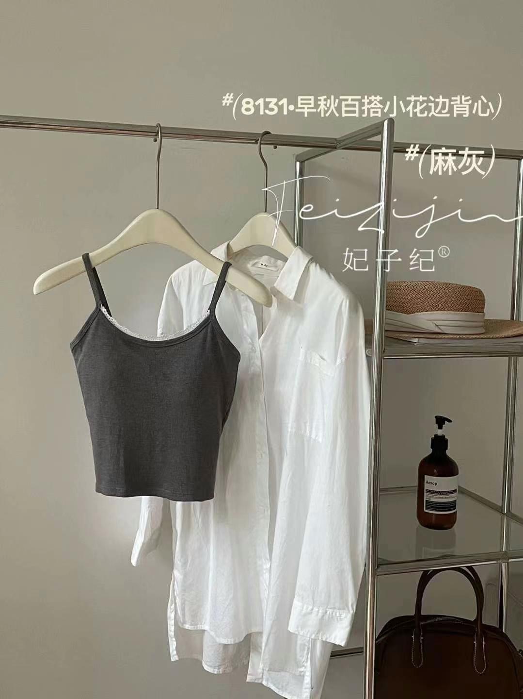 8131 이른 가을 새로운 작은 조끼 고정 컵 가슴 패드 대비 컬러 레이스 칼라 아름다운 뒤 슬링 슬림 핏 슬리밍 탑스토어 가기