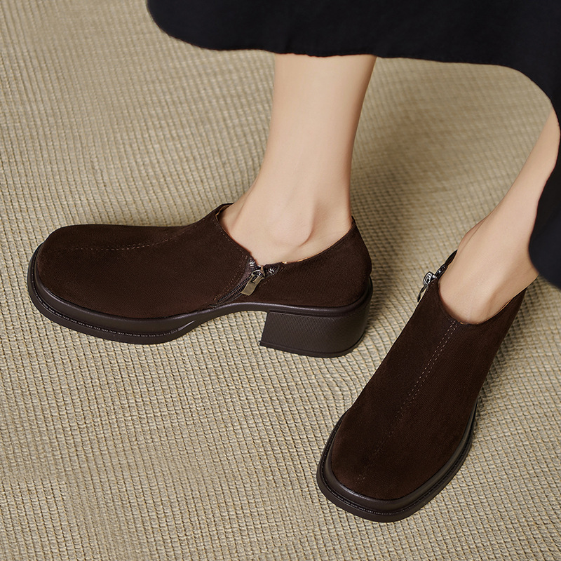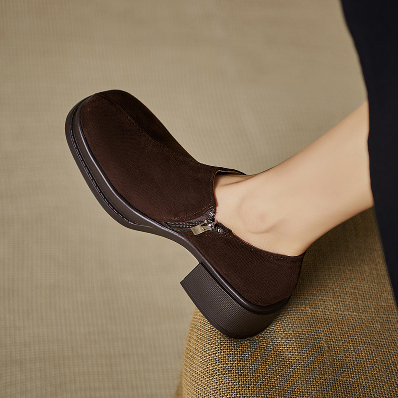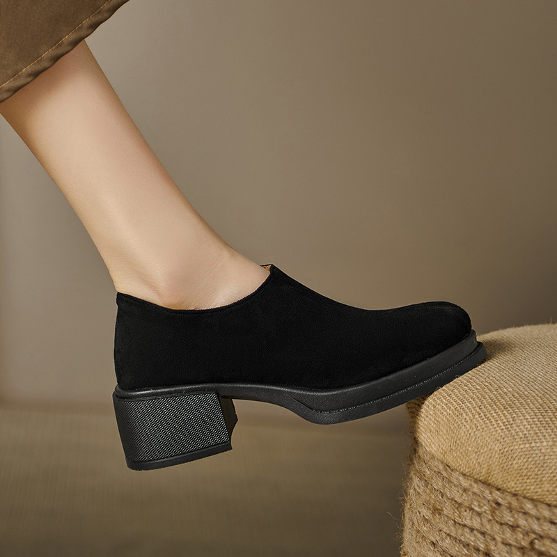 착용하기 쉬운 슈퍼 소프트 ~ 인기있는 부드러운 가죽 서리 로퍼 여성 가을과 겨울 새로운 프랑스 두꺼운 발 뒤꿈치 두꺼운 밑바닥 서양식 간단한 단일 신발스토어 가기