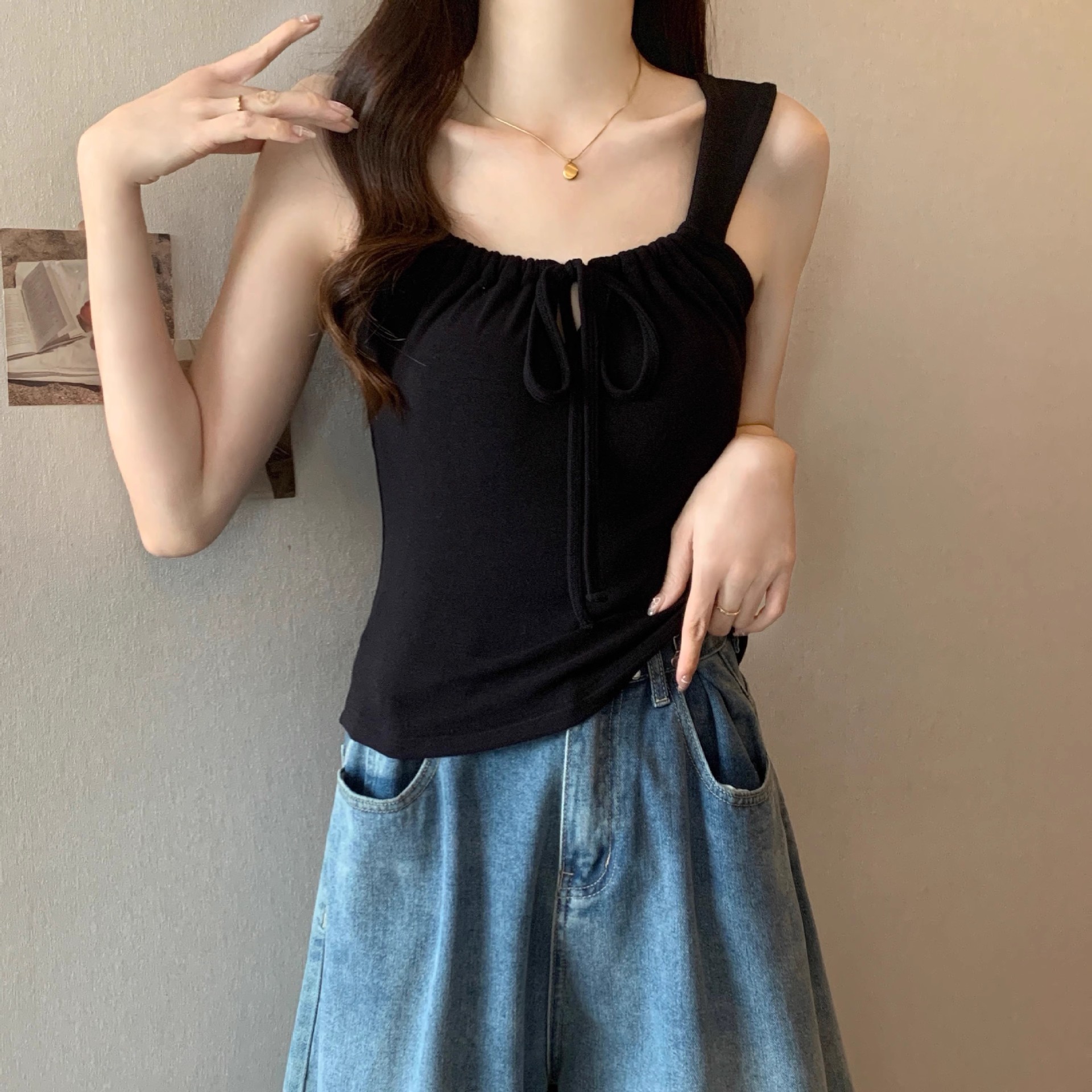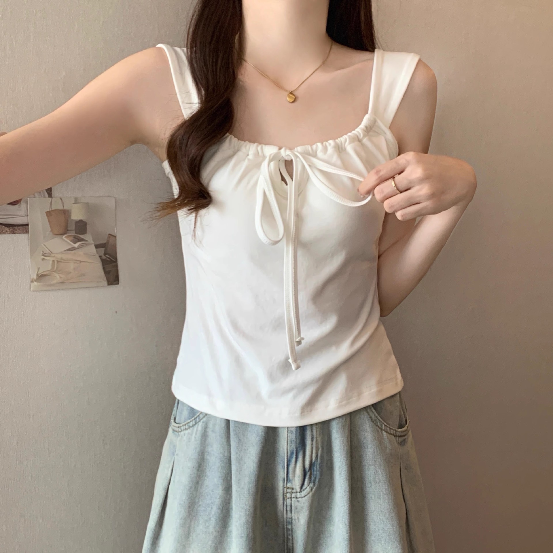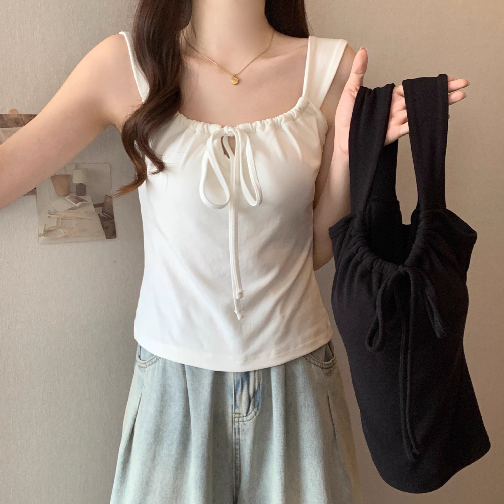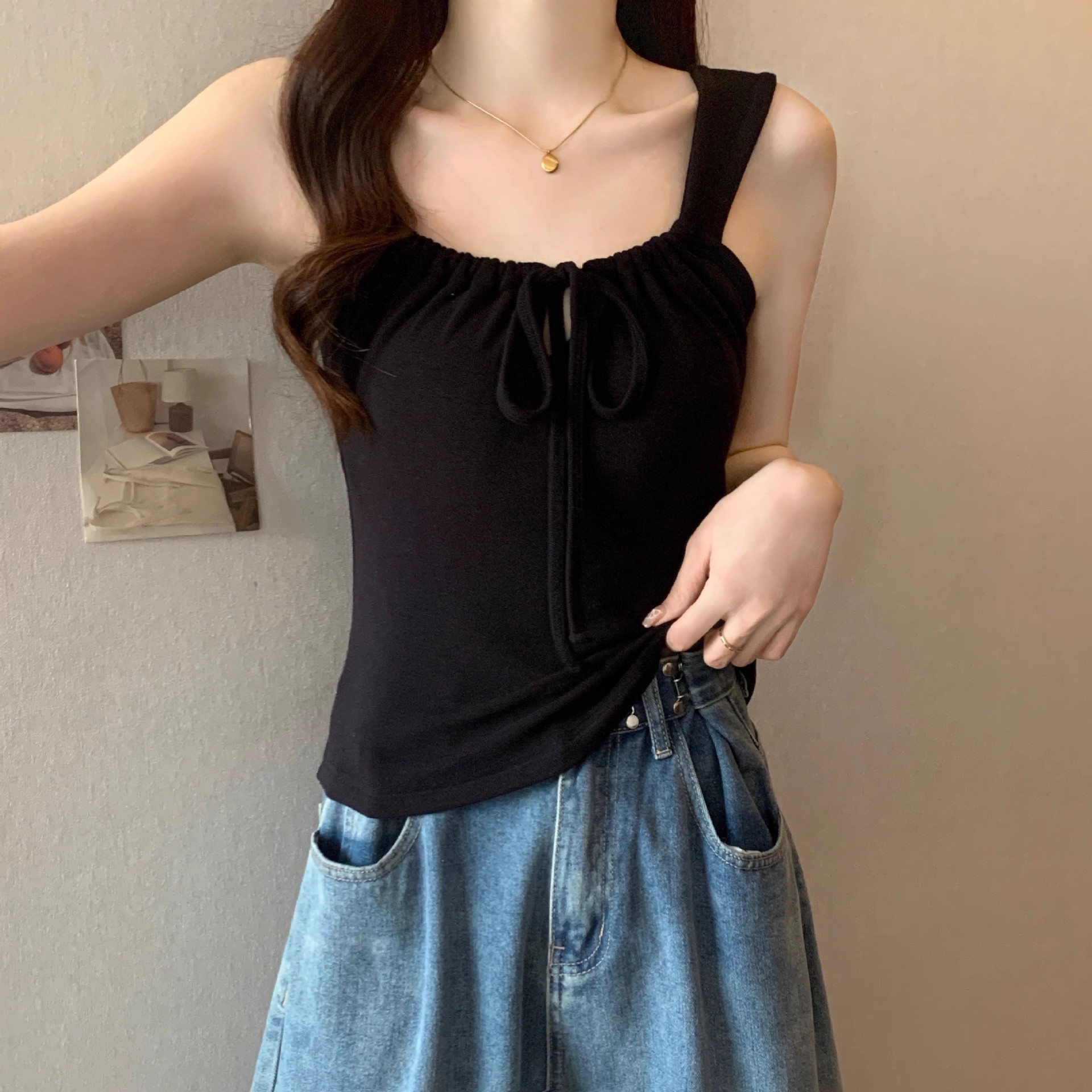 섹시한 여성용 슬립탑, 가슴 패드 내장, 등이 아름다운 디자인, 가슴을 감싸는 끈, 슬림핏, 외부 착용 가능한 짧은 기장의 베이스탑스토어 가기
