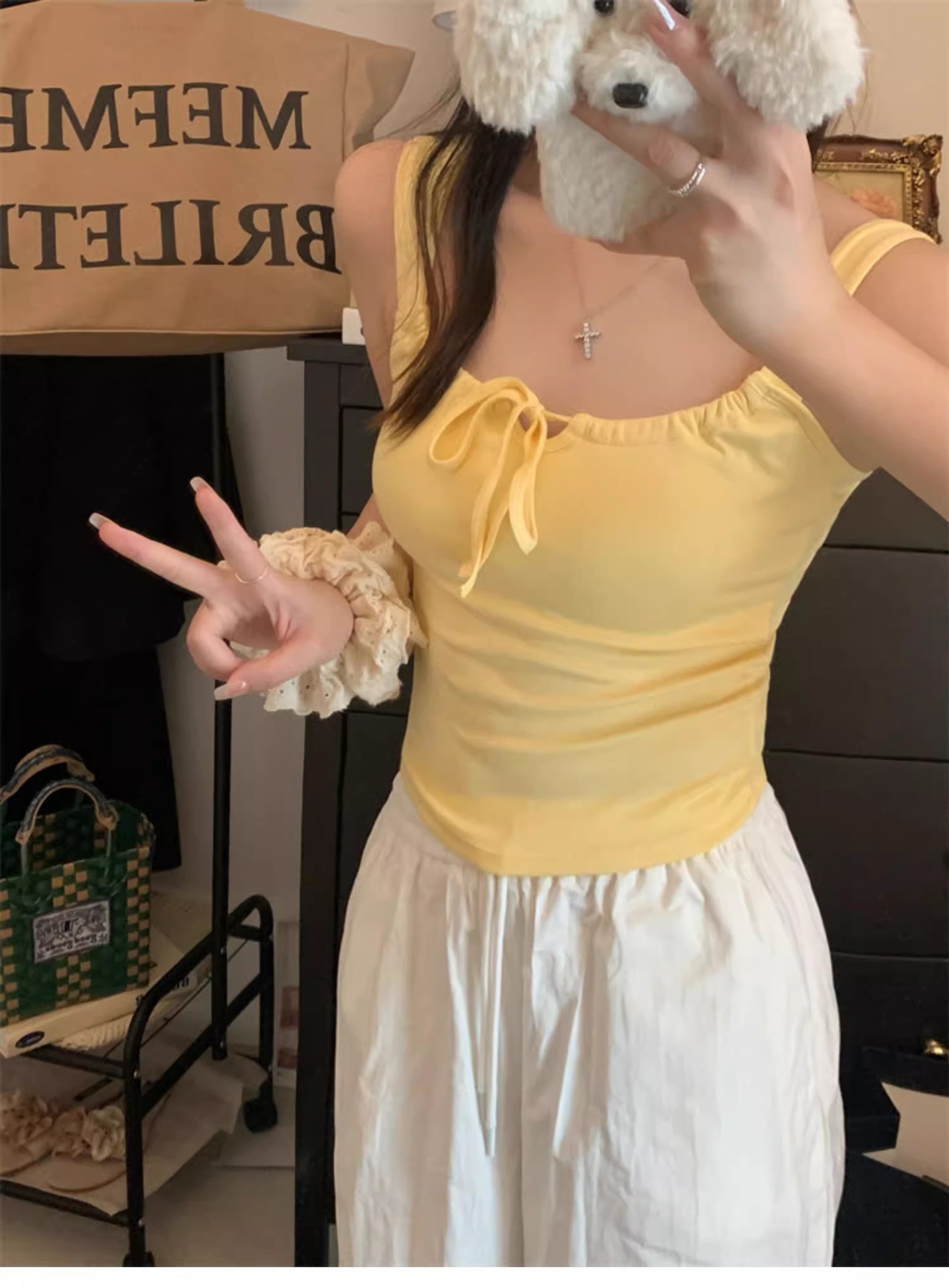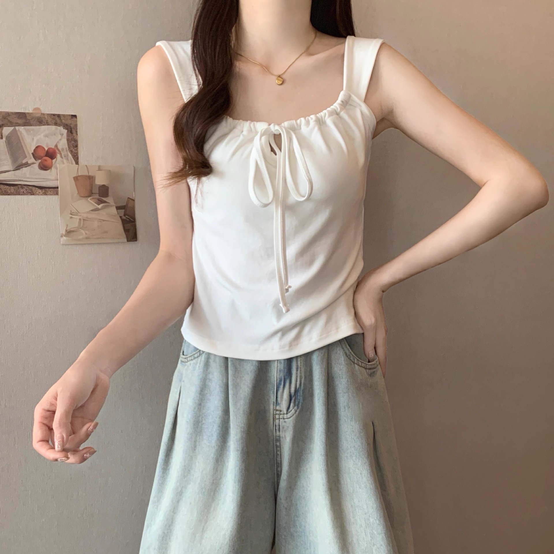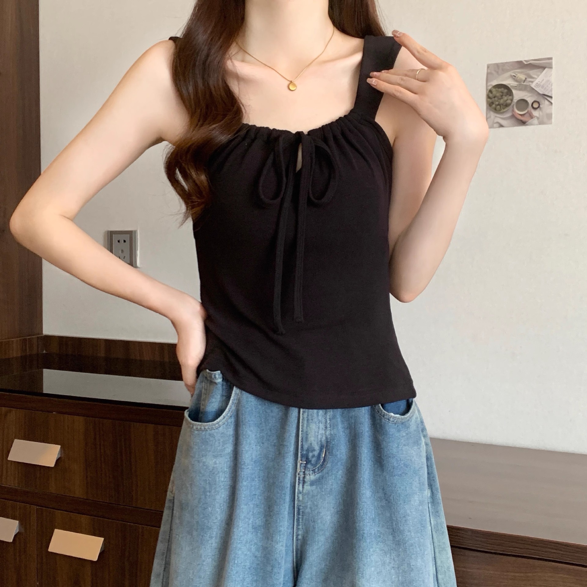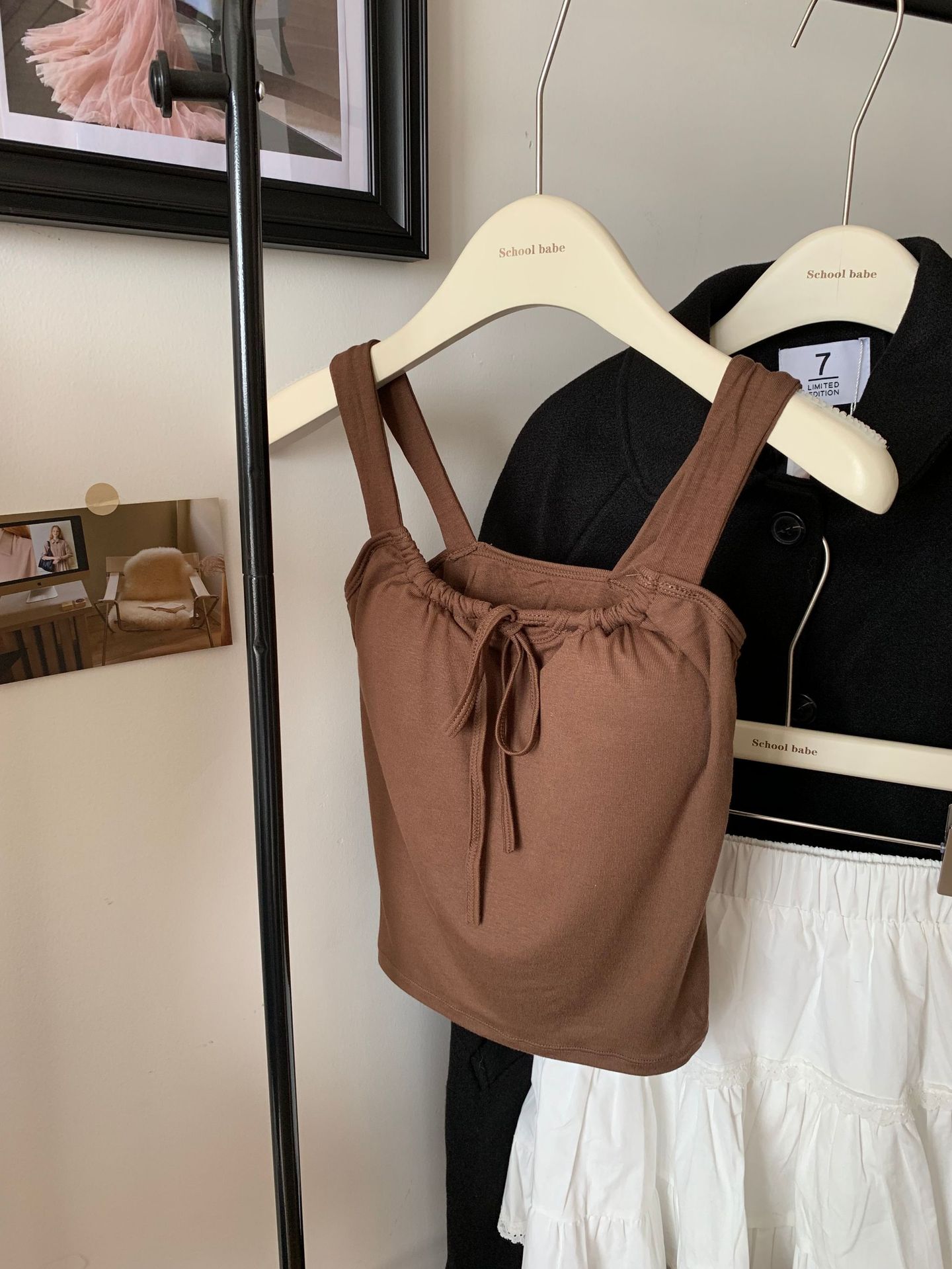 섹시한 여성용 슬립탑, 가슴 패드 내장, 등이 아름다운 디자인, 가슴을 감싸는 끈, 슬림핏, 외부 착용 가능한 짧은 기장의 베이스탑스토어 가기