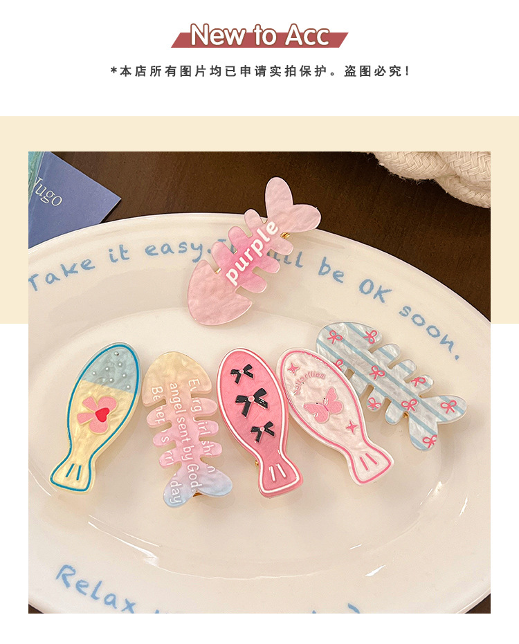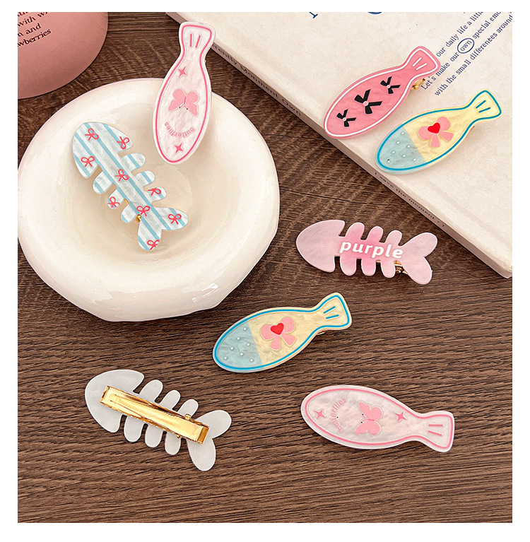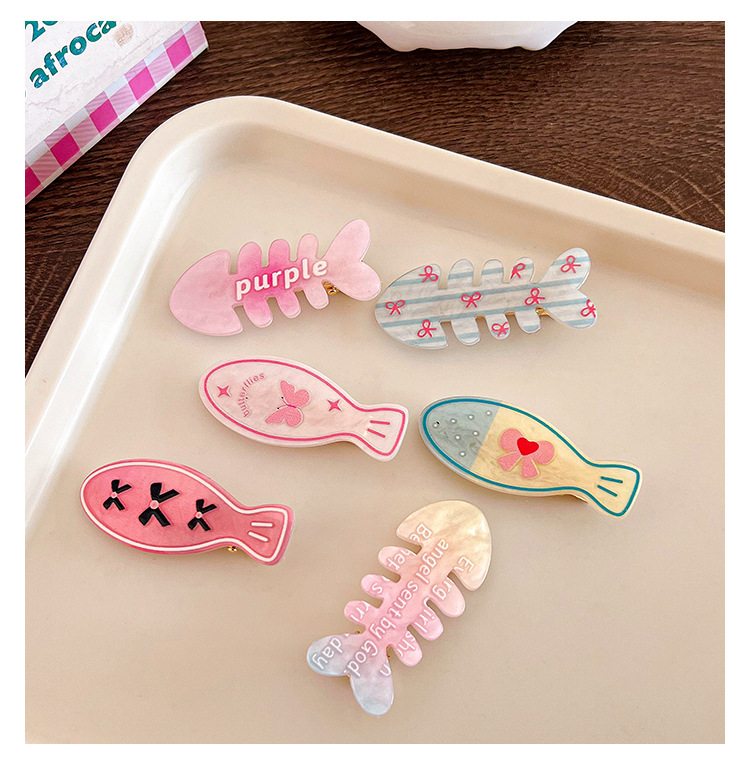 귀여운 작은 물고기 뼈 머리핀 여성용 측면 조각 Bangs 클립 어린이 올 매치 덕빌 클립 2024 새 머리띠스토어 가기