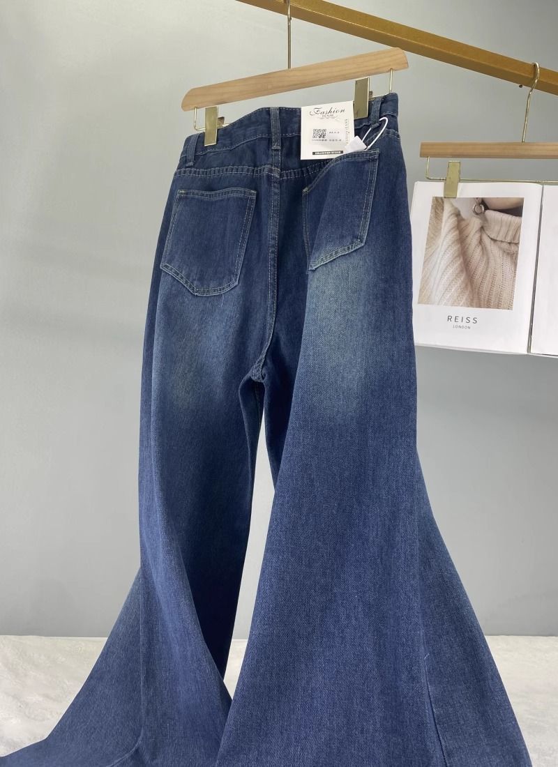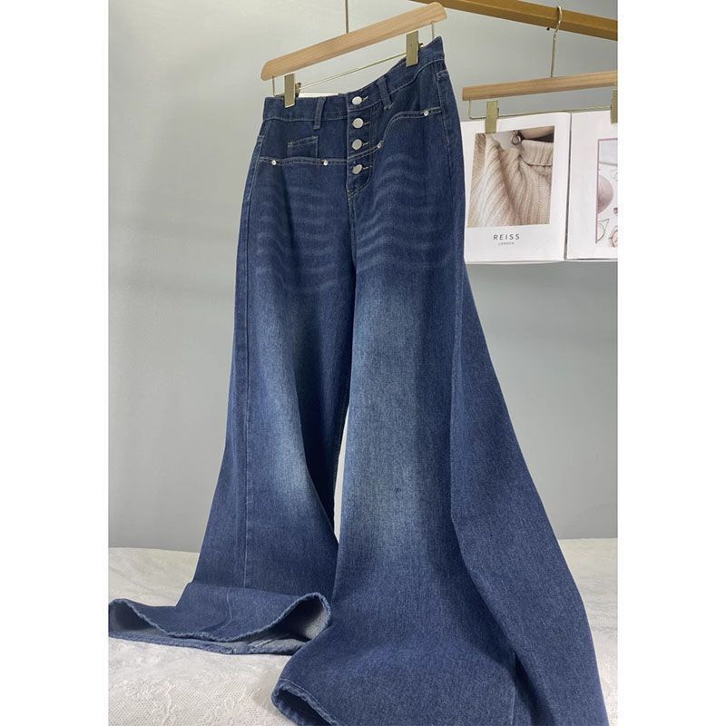빈티지 높은 허리 청바지 여성의 2024 가을 새로운 스타일 스트레이트 튜브 느슨한 플러스 사이즈 덮는 고기 넓은 다리 유행 바지스토어 가기