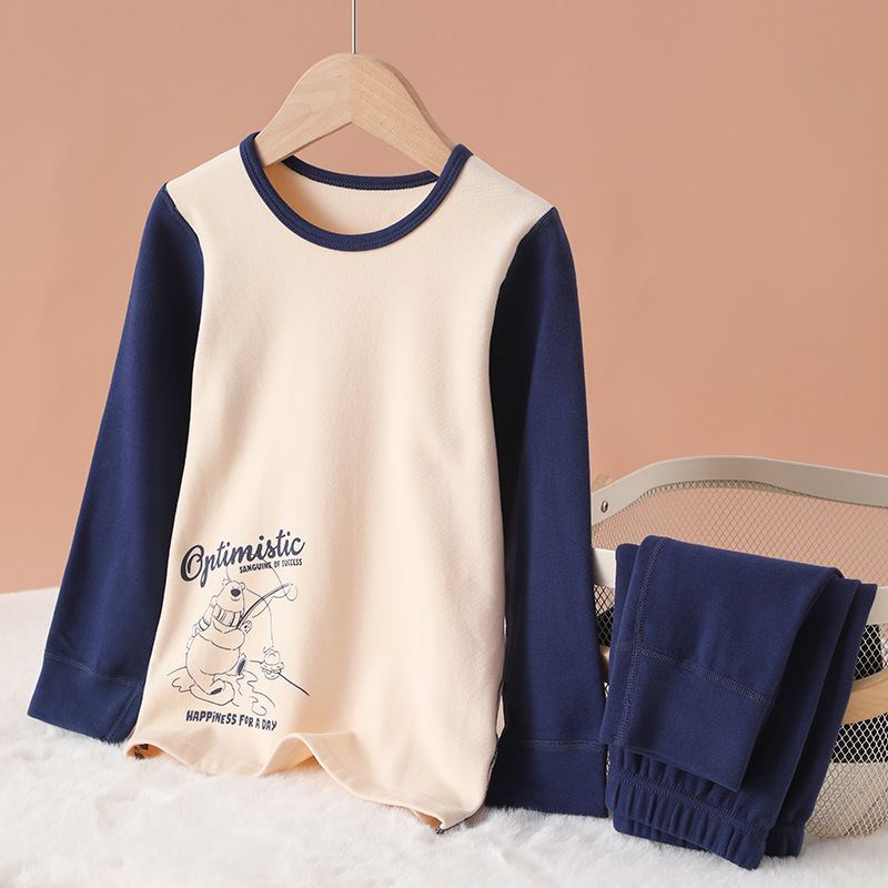 새 소년의 가을 옷과 바지 Shushiu 스크럽 뼈없는 겨울 소년의 열 속옷 세트 클래스 A 코튼 두껍게