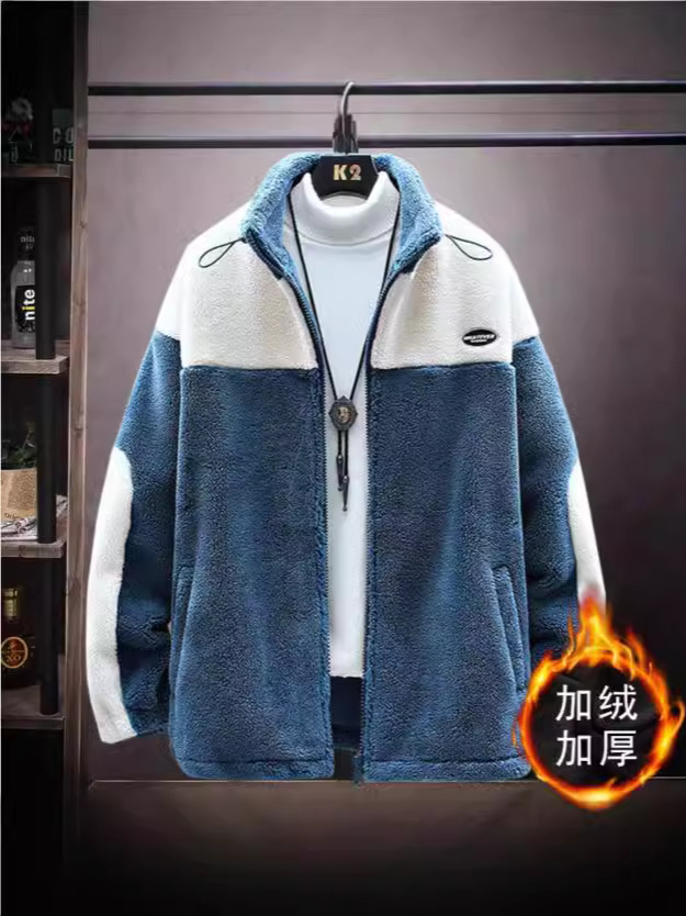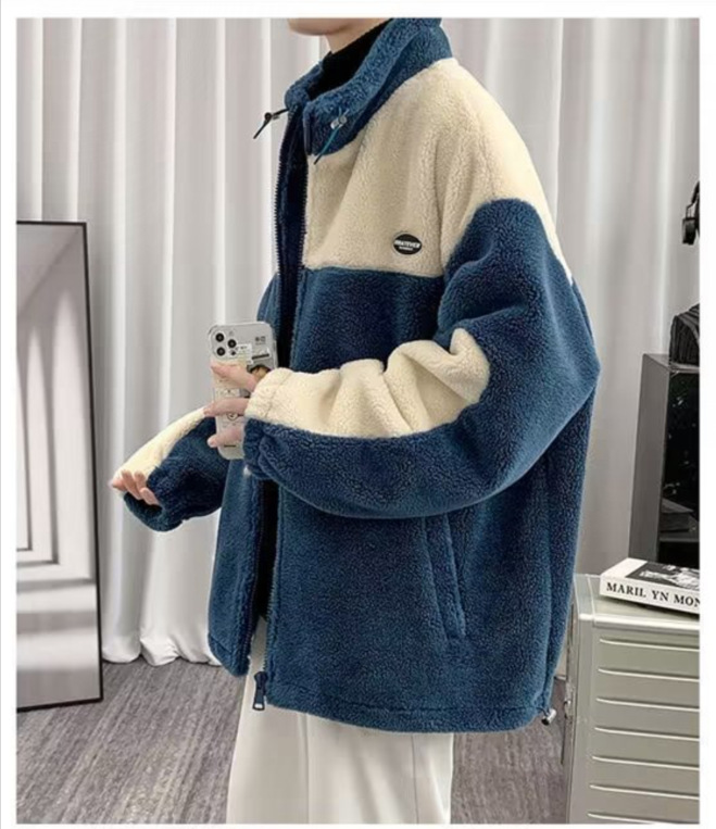 양고기 벨벳 재킷 남자 겨울 유행 중학교 학생 면 두꺼운 입자 벨벳 남자 재킷