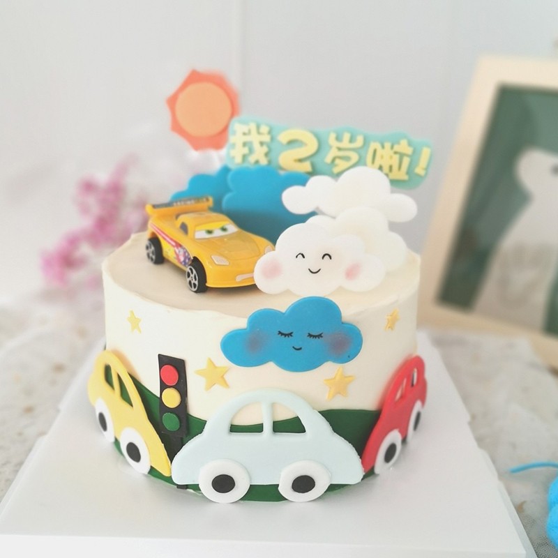 에바 만화 자동차 케이크 장식 플러그인 스폰지 폼 플립 설탕 신호등 디저트 데스크 원피스 업 카드스토어 가기